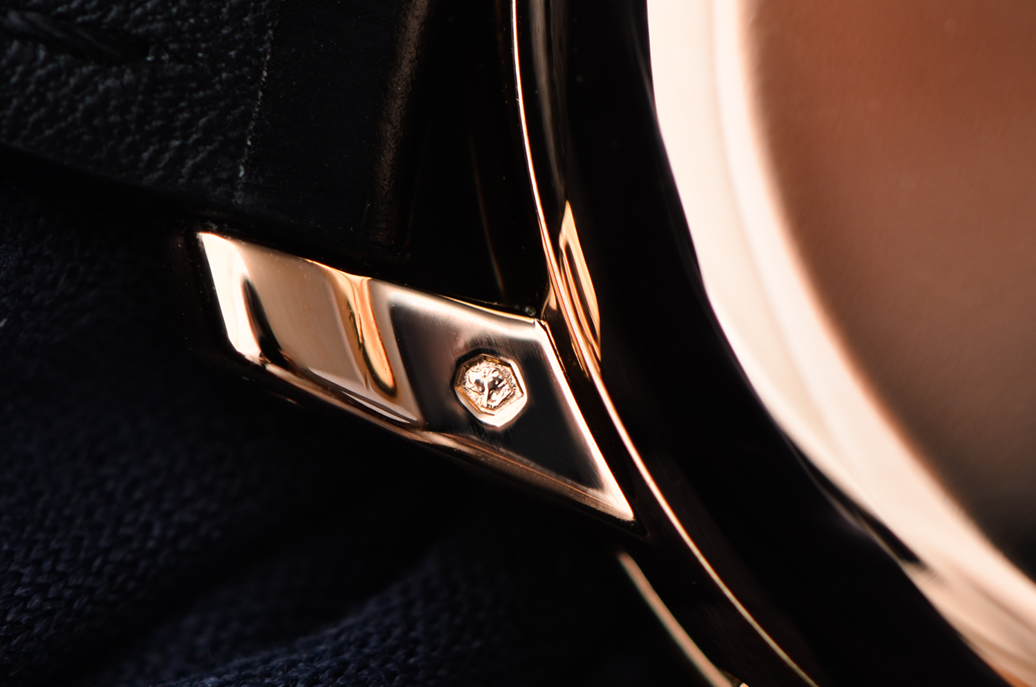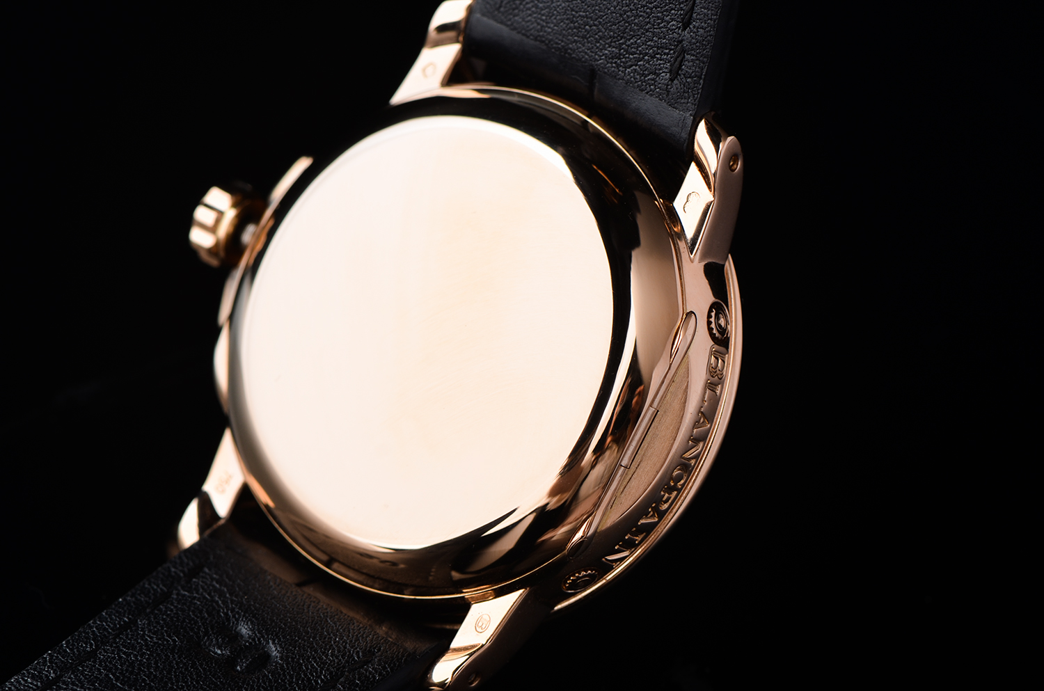特别亮点:玫瑰金将官底盖(officer-style caseback),不仅让腕表更具收藏价值,也能更方便欣赏机芯运转的精致工艺。