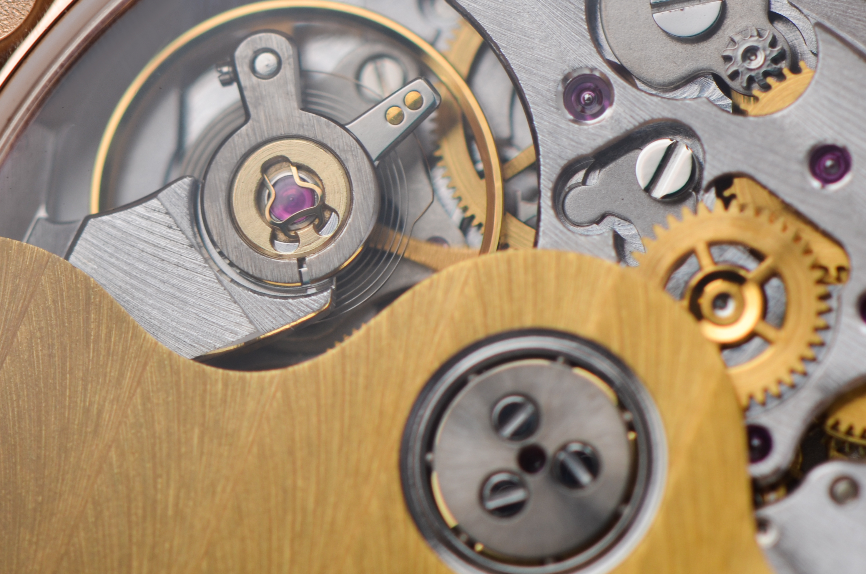 机芯:自动机械 CAL.6763机芯,100小时动力储备,18K金自动转陀