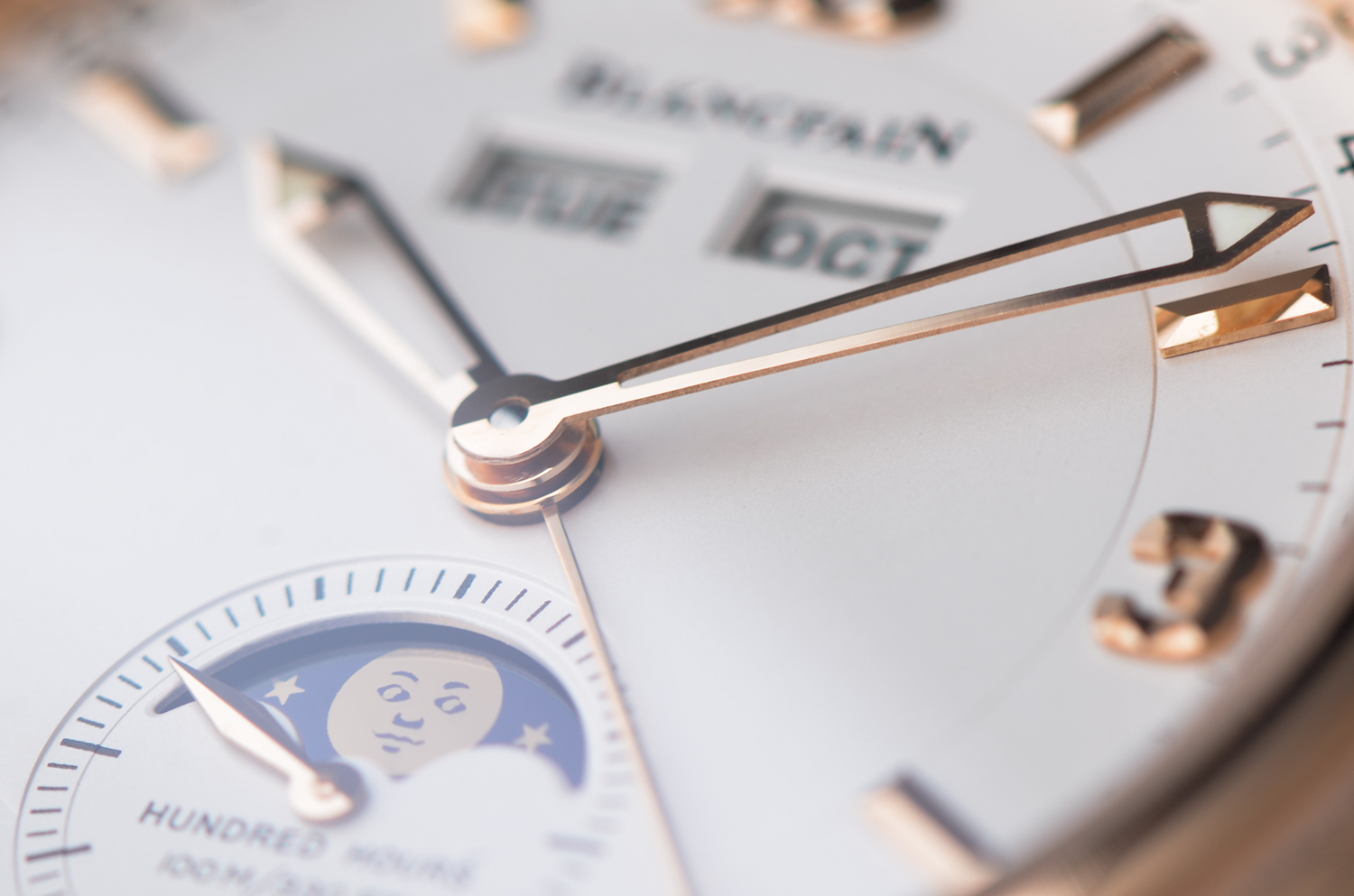 宝珀这枚 Léman 月相与全历腕表,以 18K 玫瑰金表壳搭配 38mm 恰到好处的尺寸,尽显典雅与从容。银白表盘布局和谐,日历、星期、月份与月相显示一应俱全,6点位的月相盈亏更添浪漫气息。