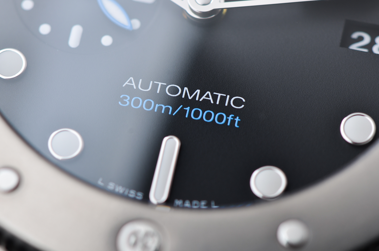 表盘为深邃的黑色调,搭配醒目的夜光时标与指针,即便在黑暗水下依旧清晰可读;9 点钟位置设有小秒盘,3 点钟位置设有日期窗,实用功能一应俱全。搭配单向旋转潜水表圈与 300 米专业防水,它不仅是风格鲜明的时尚单品,更是一枚真正的潜水工具腕表。