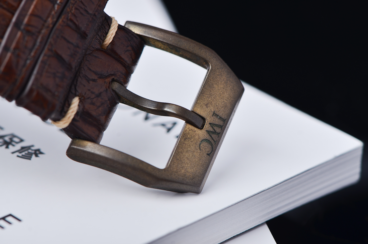 表带选用复古棕色鳄鱼皮表带,手工缝制工艺彰显细节品质,与青铜壳体色调完美呼应。