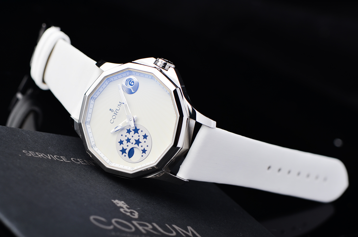 昆仑 Corum 以其标志性的十二边形表壳,再次将艺术与机械融合,打造出这枚 Admiral’s Cup Legend 38 Mystery Moon(型号:A384/03118) —— 一款献给优雅与想象的腕上星空。