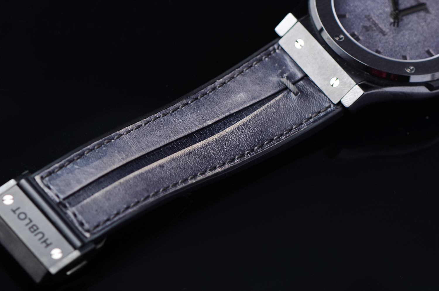 表带:原厂黑色 “Berluti伯尔鲁帝Gaspard皮革”内衬橡胶表带