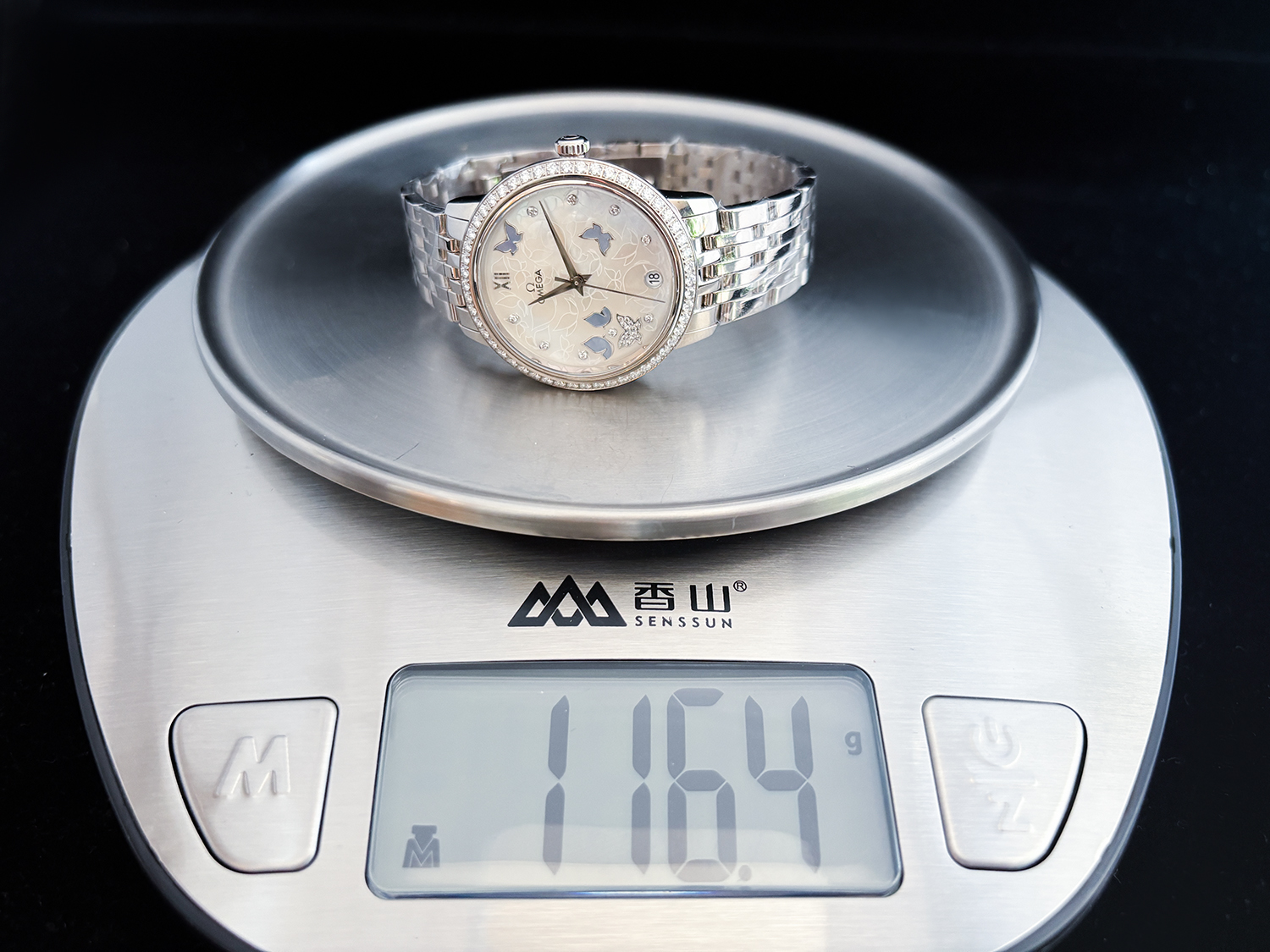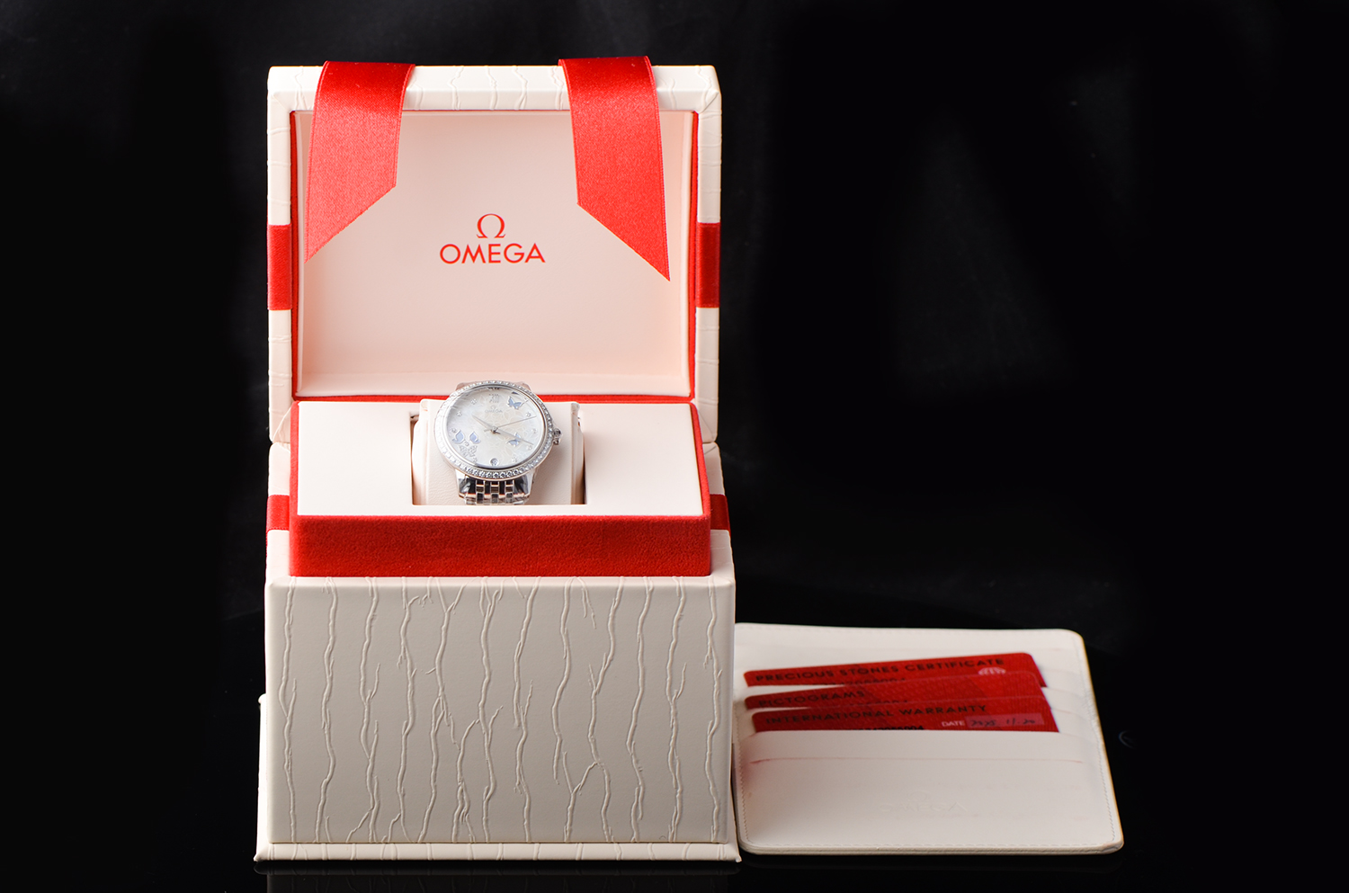 这款 Omega De Ville Prestige 424.55.33.20.55.003,以 18K白金 打造全表,在光线下呈现出独有的细腻冷光;表圈与时标镶嵌璀璨钻石,优雅而不张扬,将低调奢华诠释到极致。