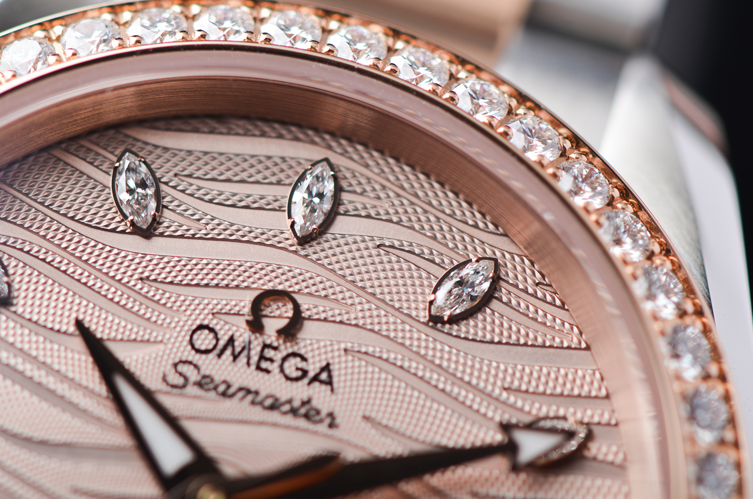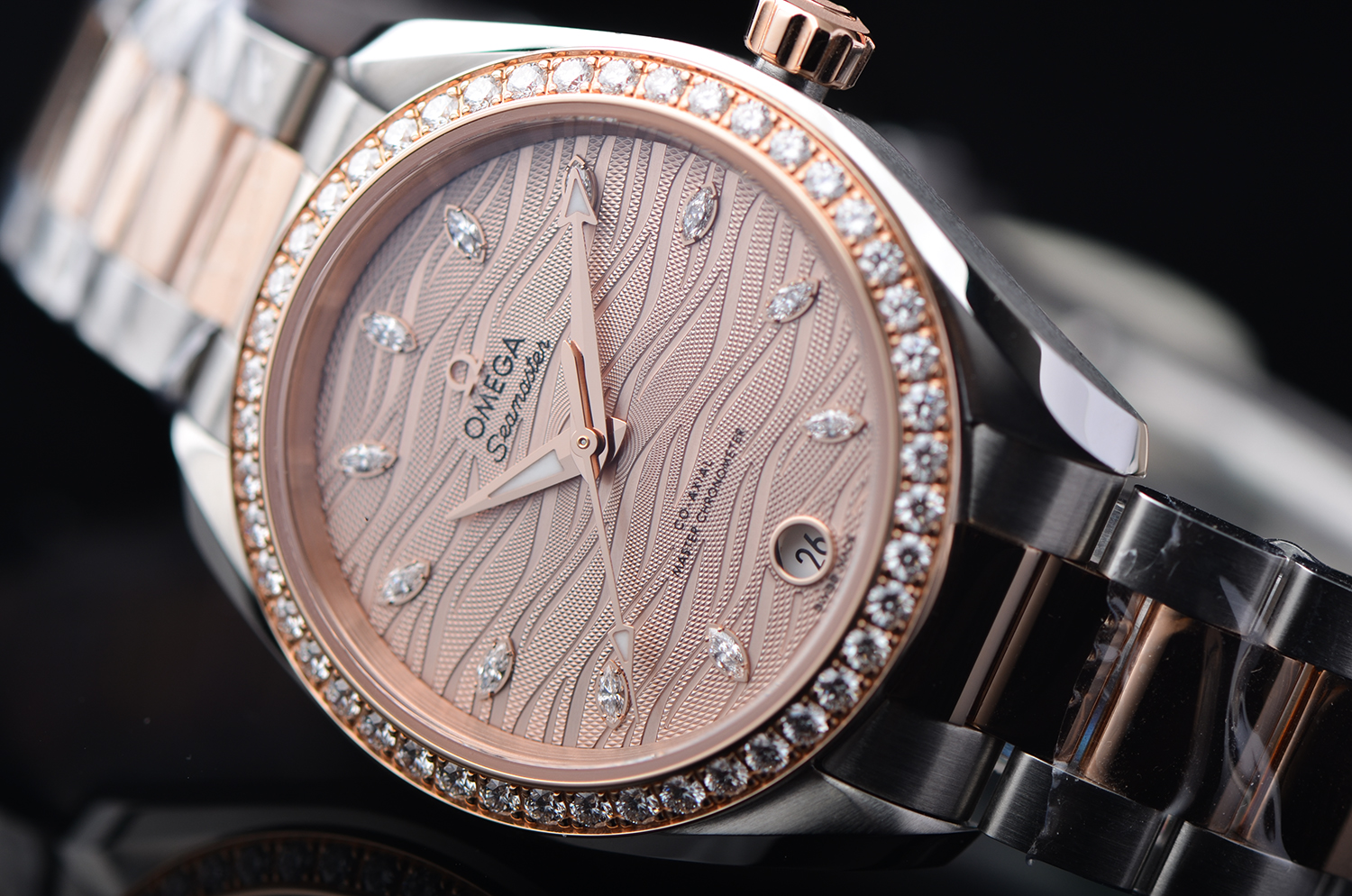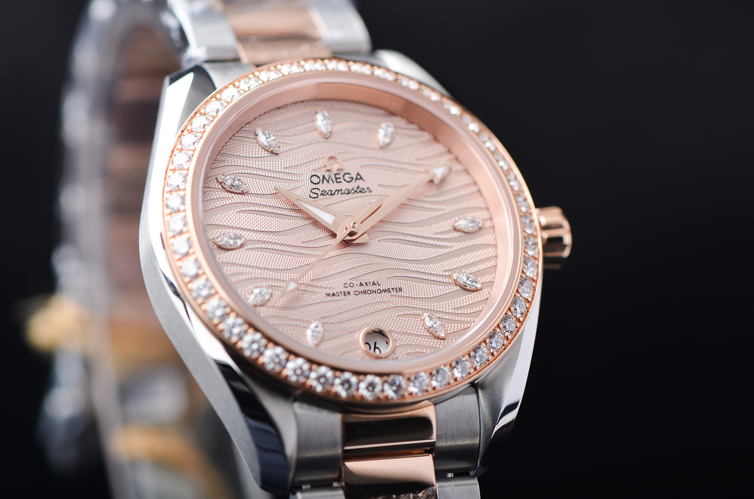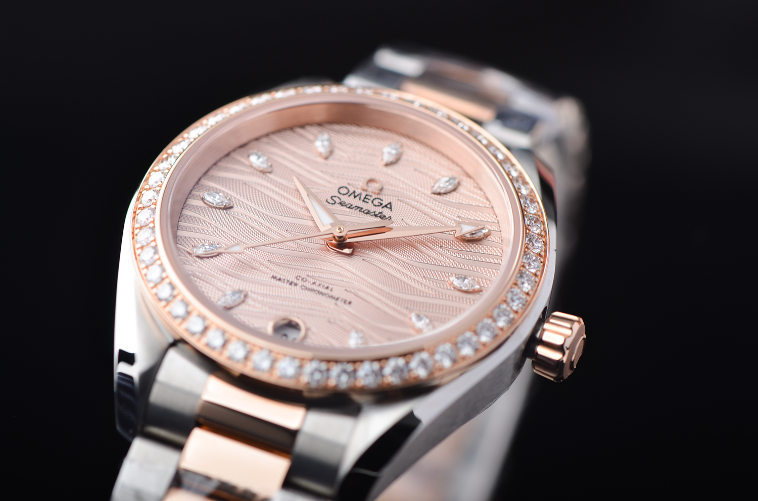当柔和的蜜金色与钻石光泽相遇,这枚 Aqua Terra 34mm 呈现出一种独属于女性的高级气场。贵金属、钻石与海洋元素的结合,让它成为真正能提升气质的精致之选。