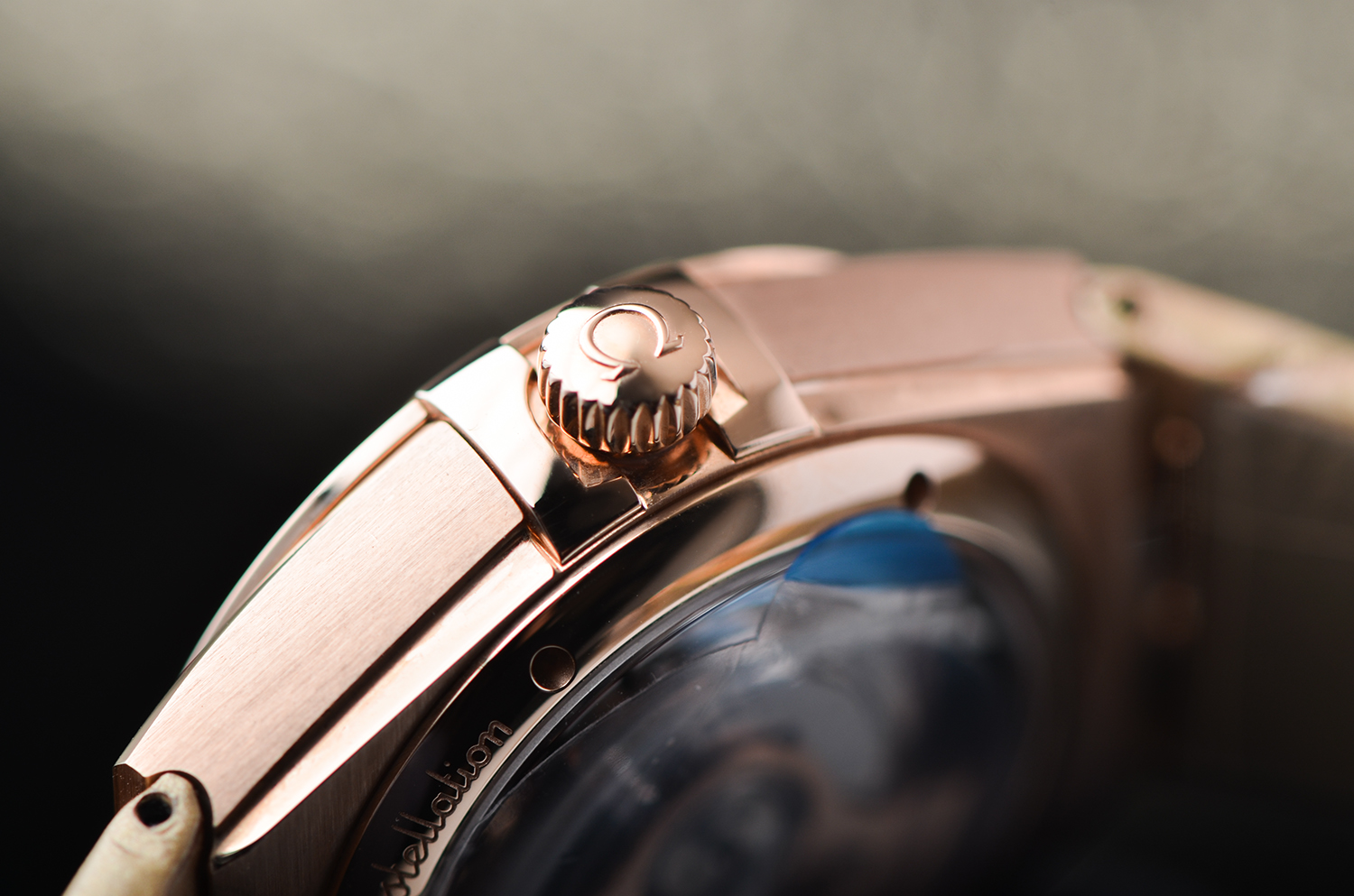 表壳与表圈均采用欧米茄专利 Sedna™ 18K 金,