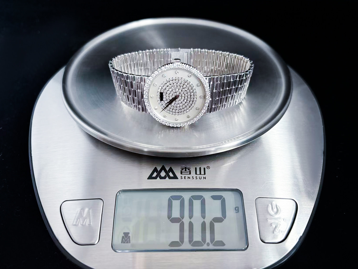 【售价76800RMB 全白金满天星镶钻表盘,重90.2克】