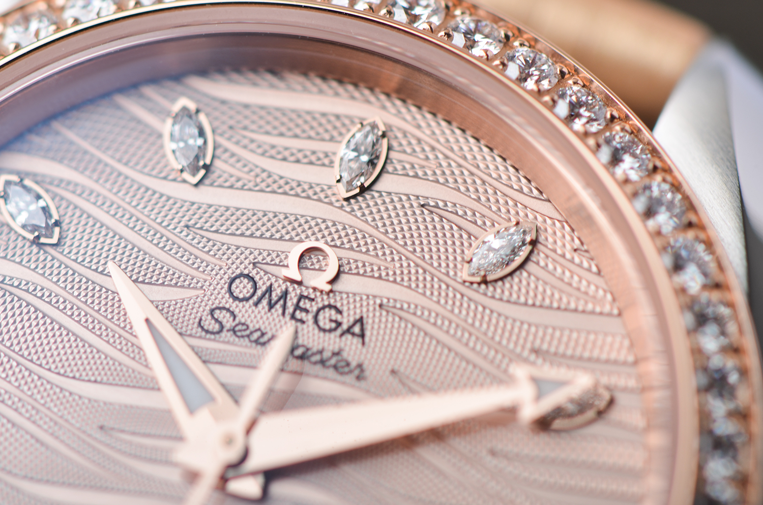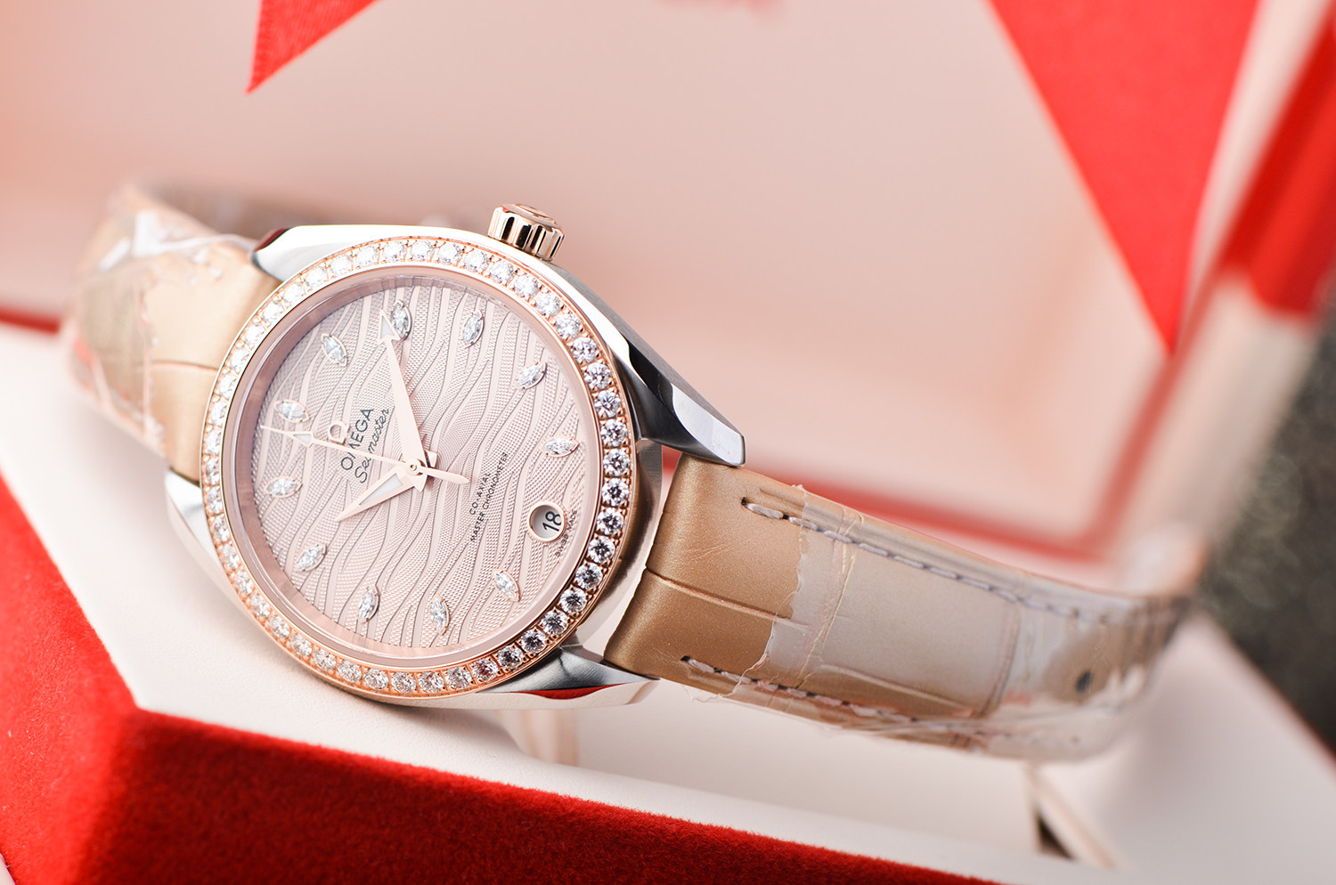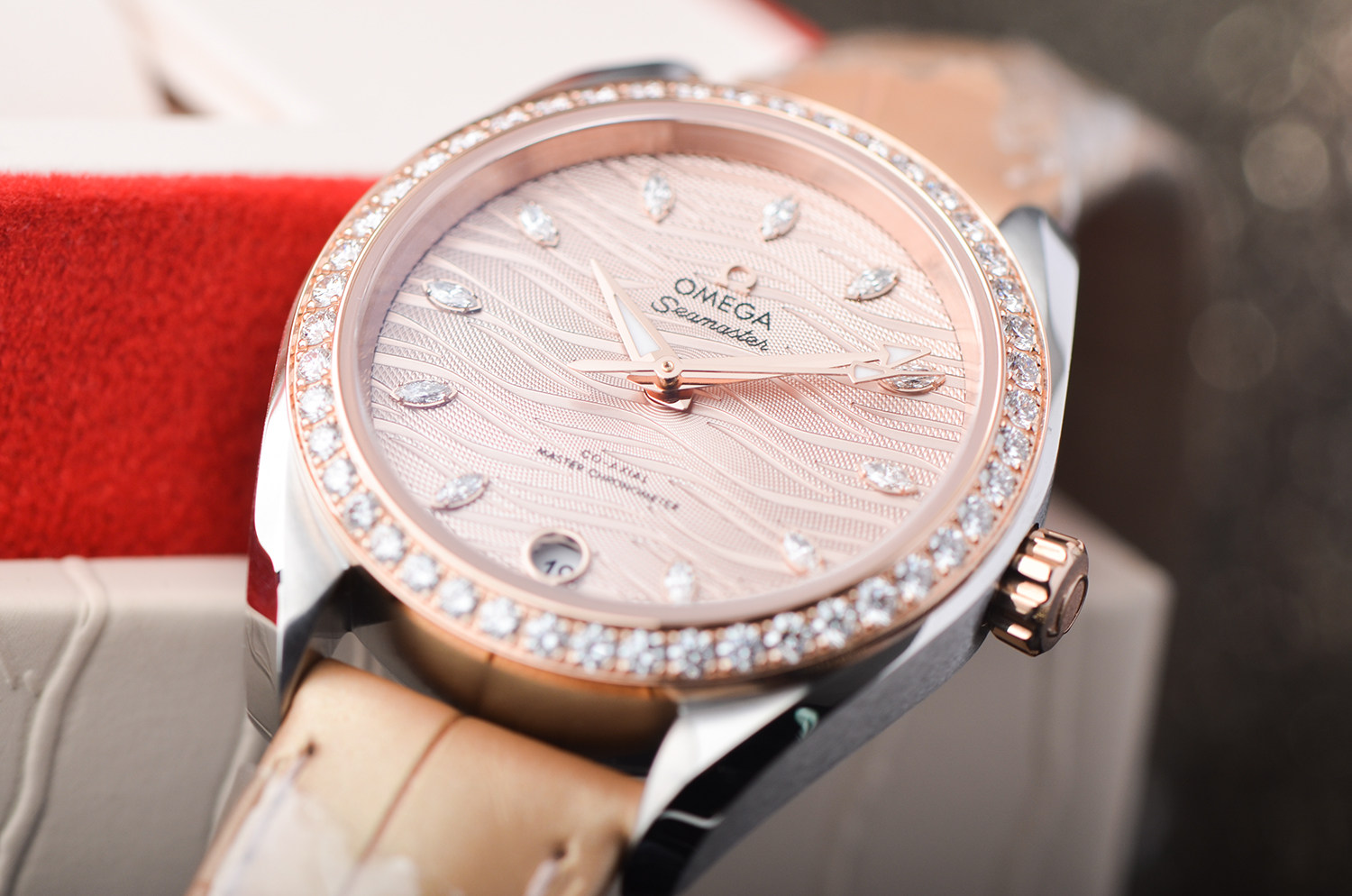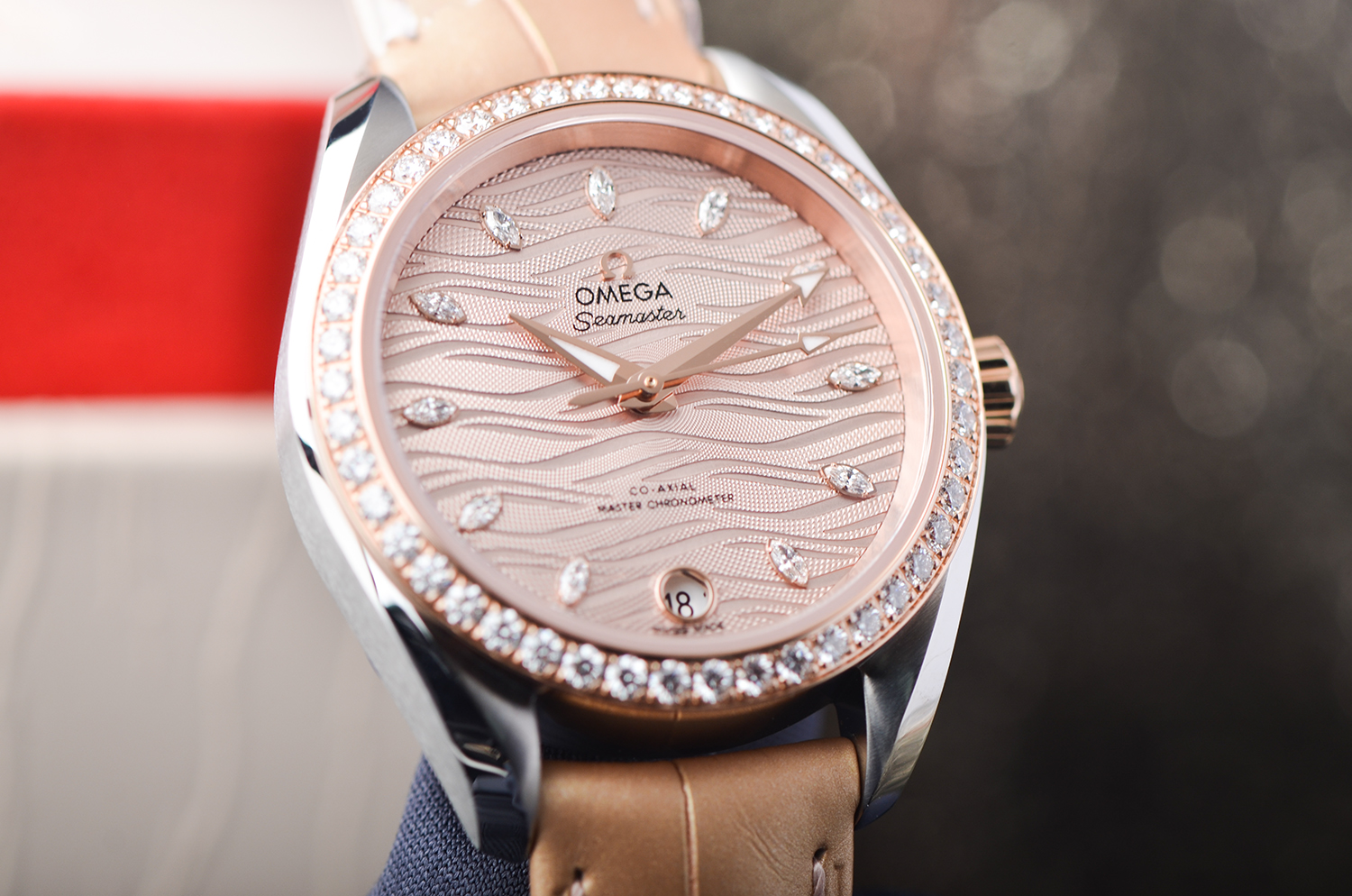 当柔和的蜜金色与钻石光泽相遇,这枚 Aqua Terra 34mm 呈现出一种独属于女性的高级气场。贵金属、钻石与海洋元素的结合,让它成为真正能提升气质的精致之选。
