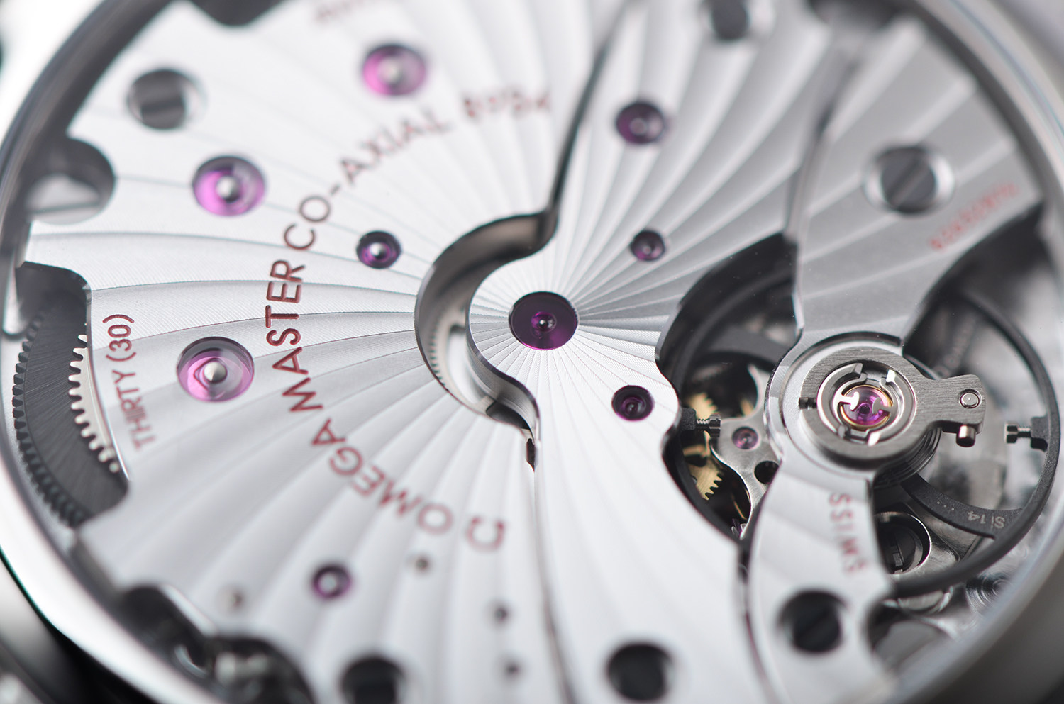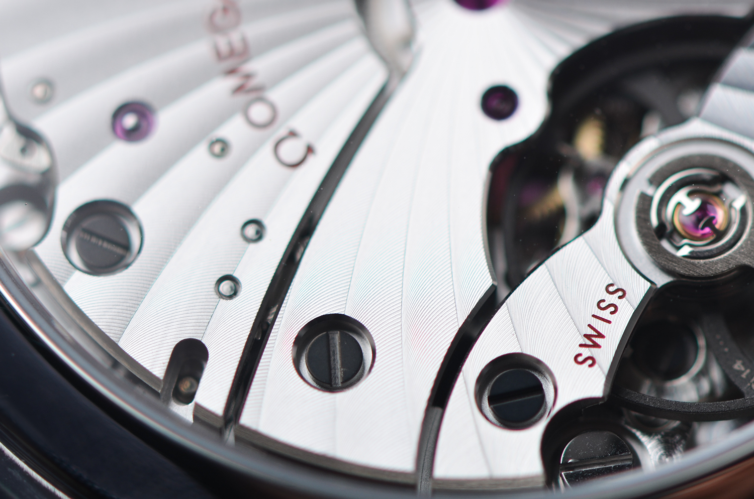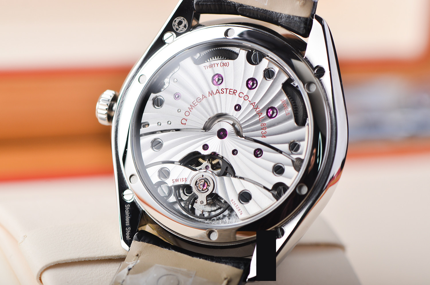 搭载 Omega 8934 手上链机芯,通过大师天文台八项严苛认证,精准、耐磁、稳定。