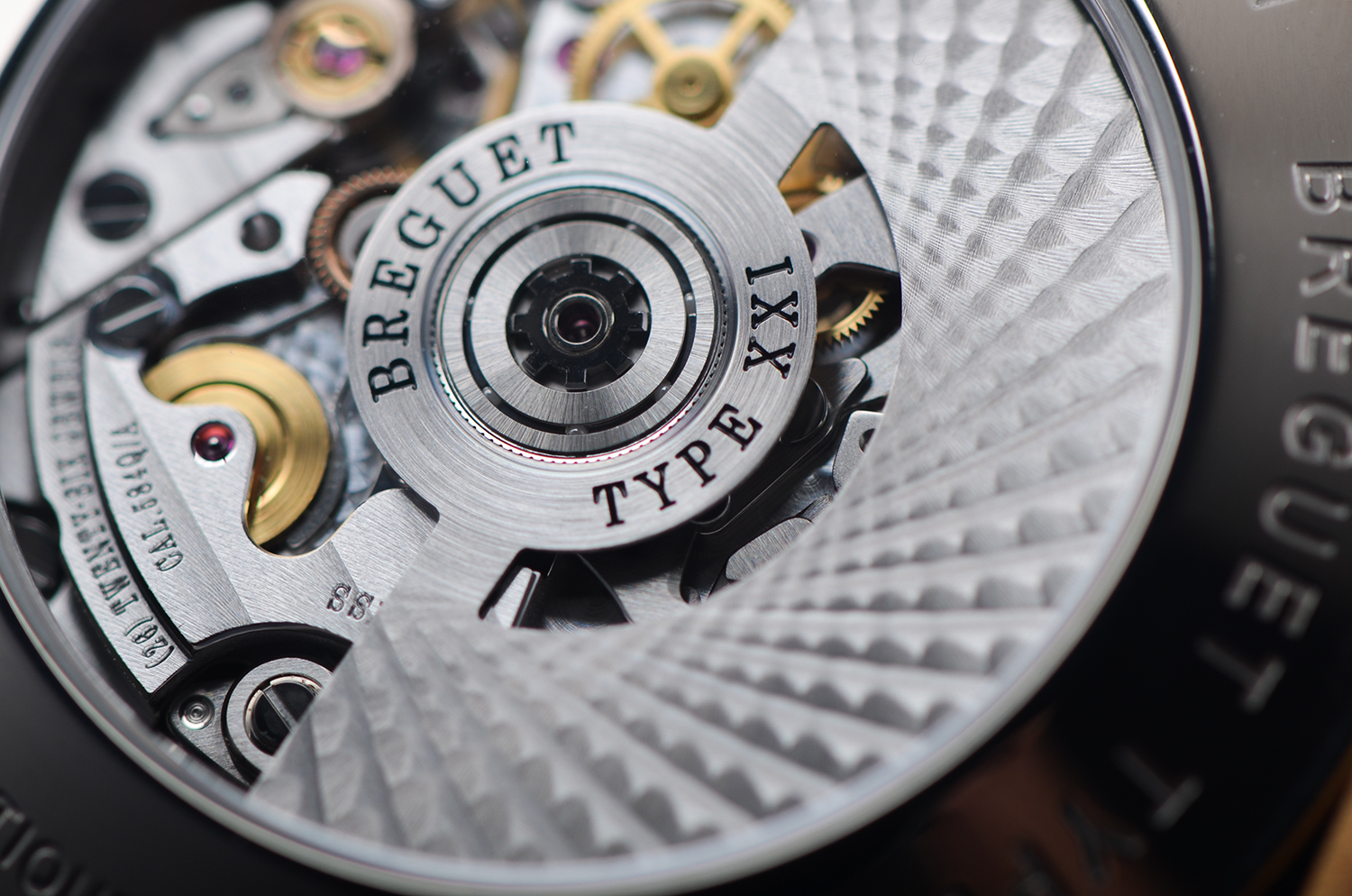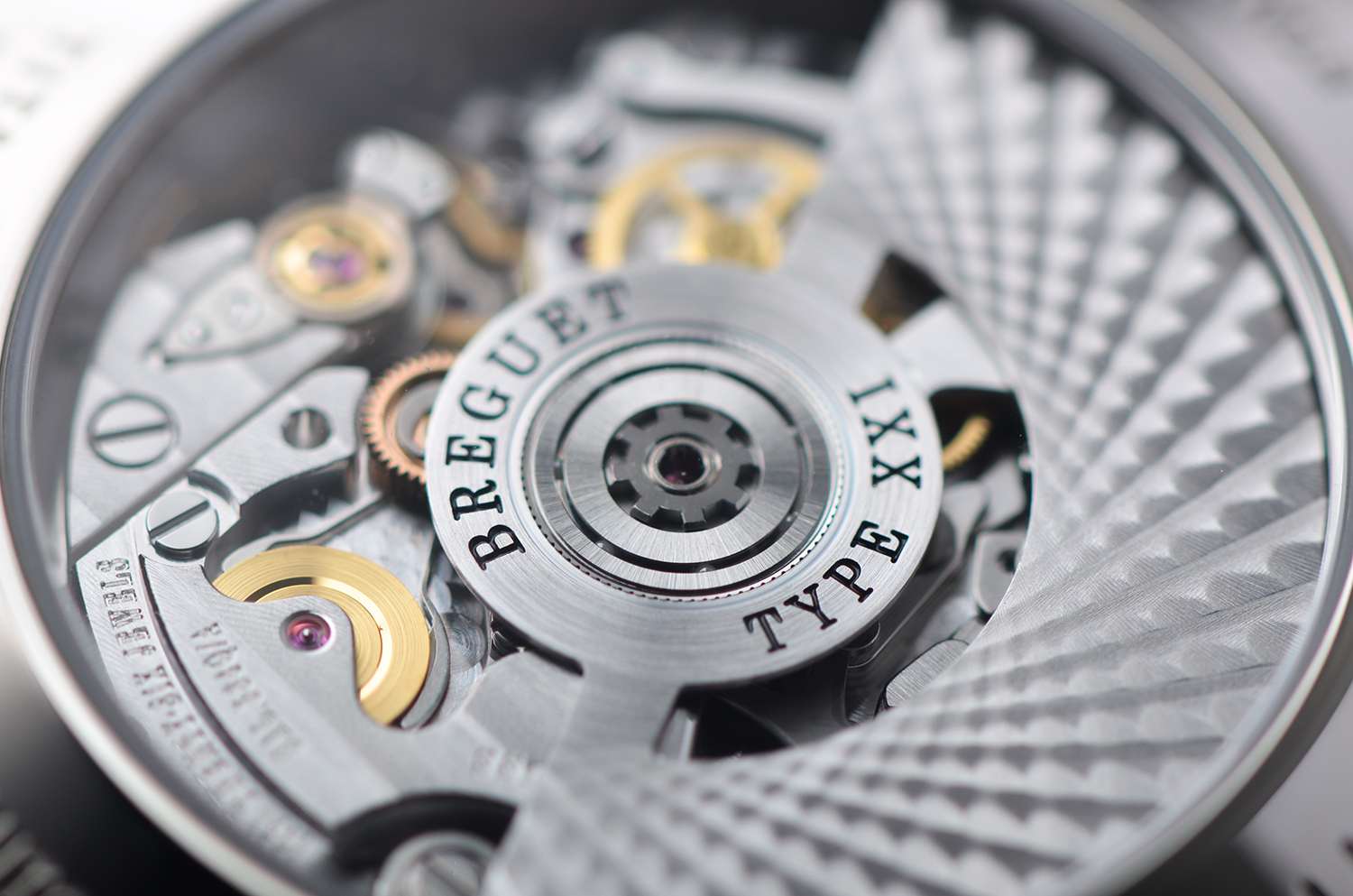内部搭载宝玑自制Cal. 584Q/A飞返自动计时机芯,提供48小时动力储备,振频为4Hz,具备矽游丝结构,出色抗磁抗震,长期运行稳定可靠。