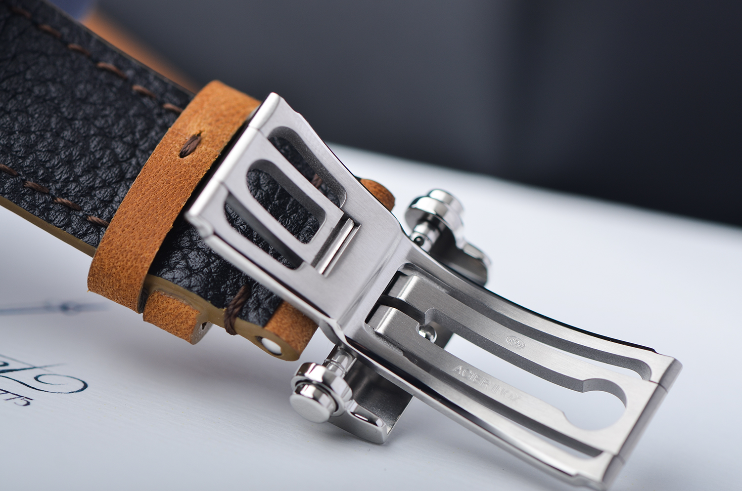 表带:后配全新棕色牛皮表带,另有一条原厂黑色鳄鱼皮表带,共计2条表带
