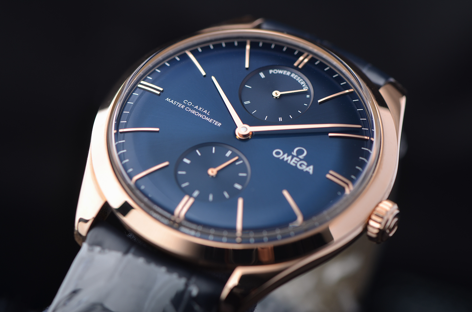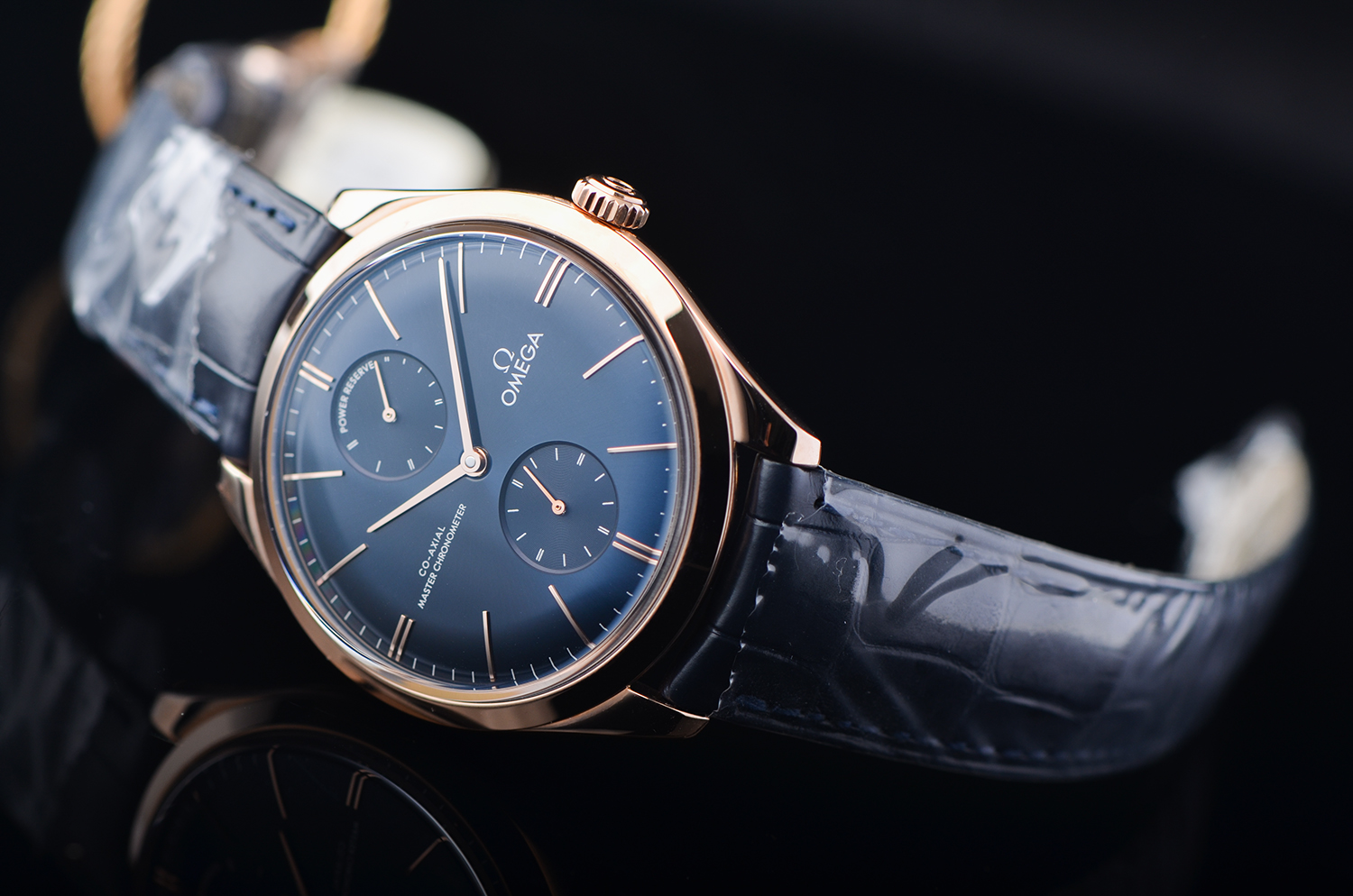 欧米茄自家专利配方玫瑰金,更抗褪色、色泽稳定,温润感优于一般玫瑰金。
