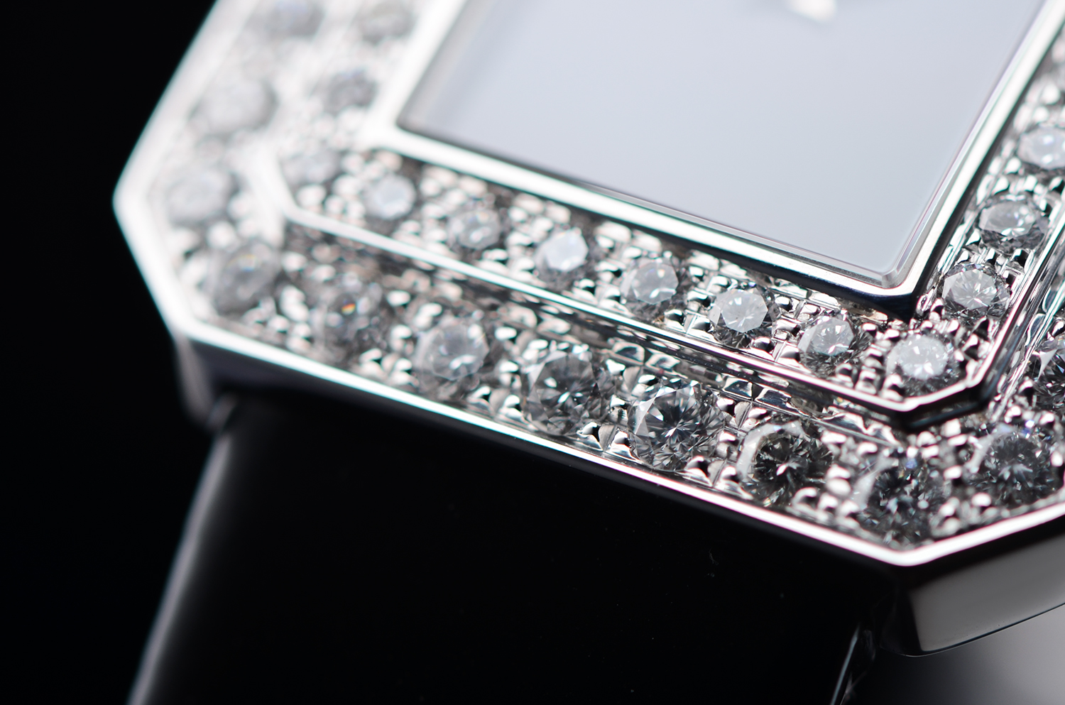 白金镶钻黑玛瑙表盘石英折叠扣皮带女表