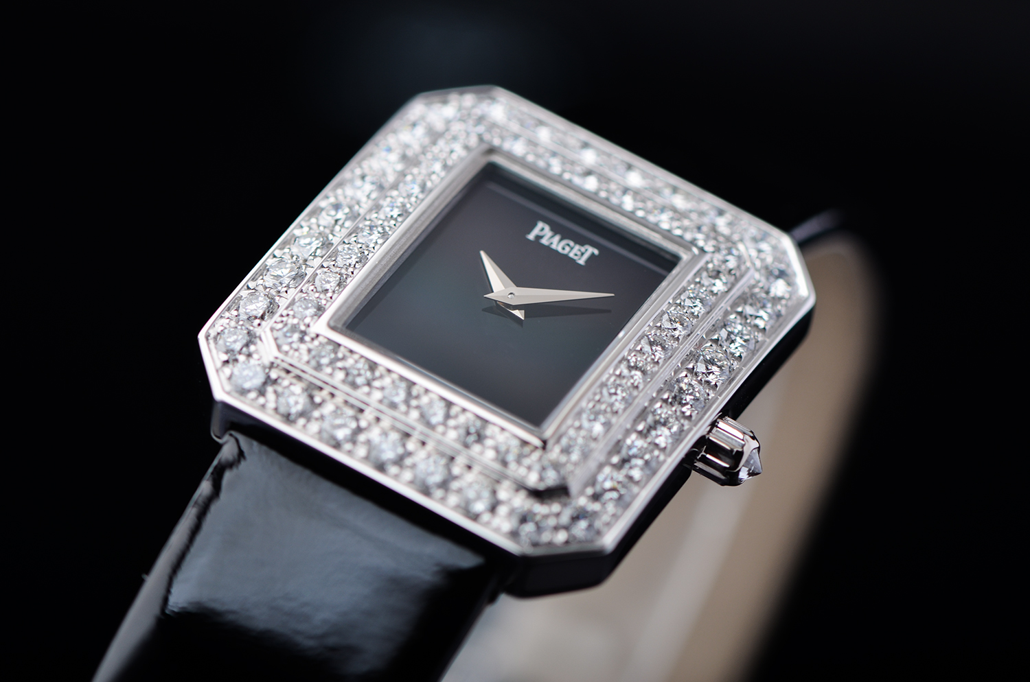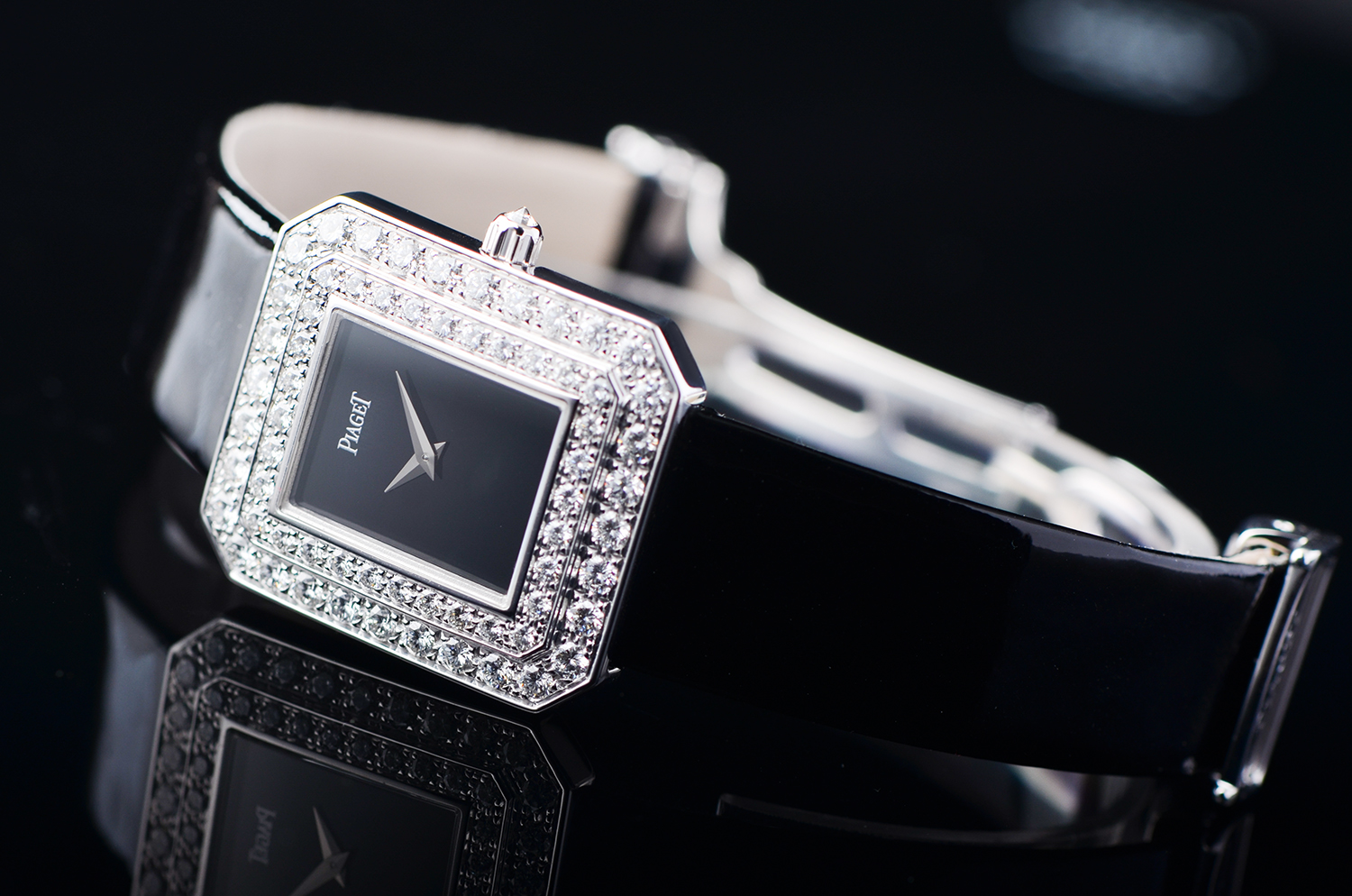 黑色亮漆牛皮表带:与黑玛瑙表盘呼应,彰显高雅、纯粹、经典的风格