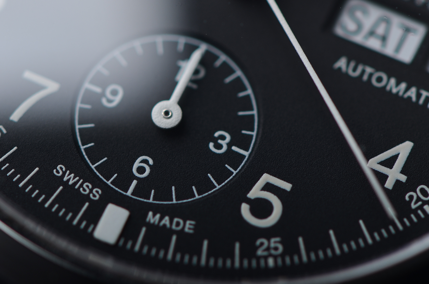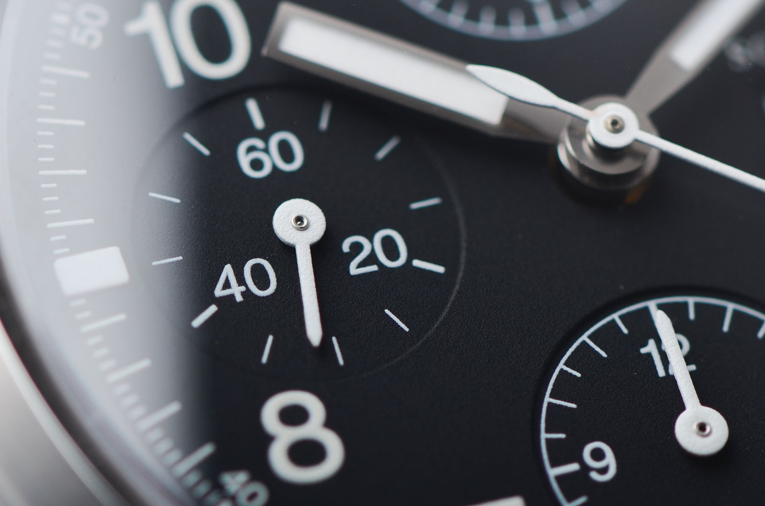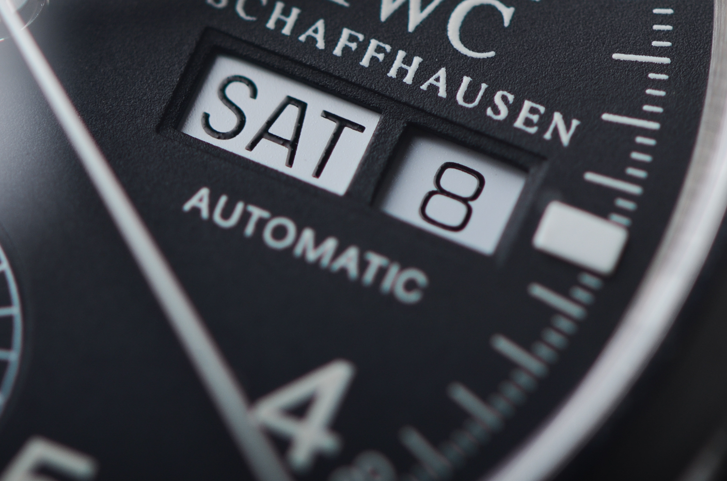 IW370603 采用万国最受欢迎的 Flieger飞行员风格布局,黑色表盘搭配高对比的白色刻度,读时清晰利落。