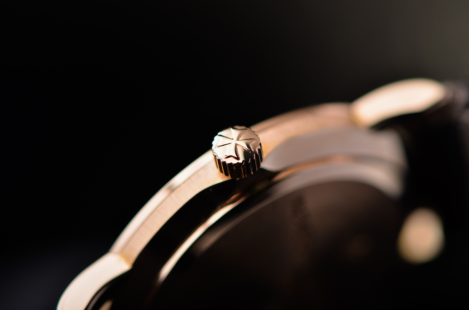 表壳采用 18K 玫瑰金,色泽柔和细腻,不张扬、不俗艳,在光线下散发温润光泽。无论是正式场合还是日常通勤,它都能自然融入并悄然提升整体气质。