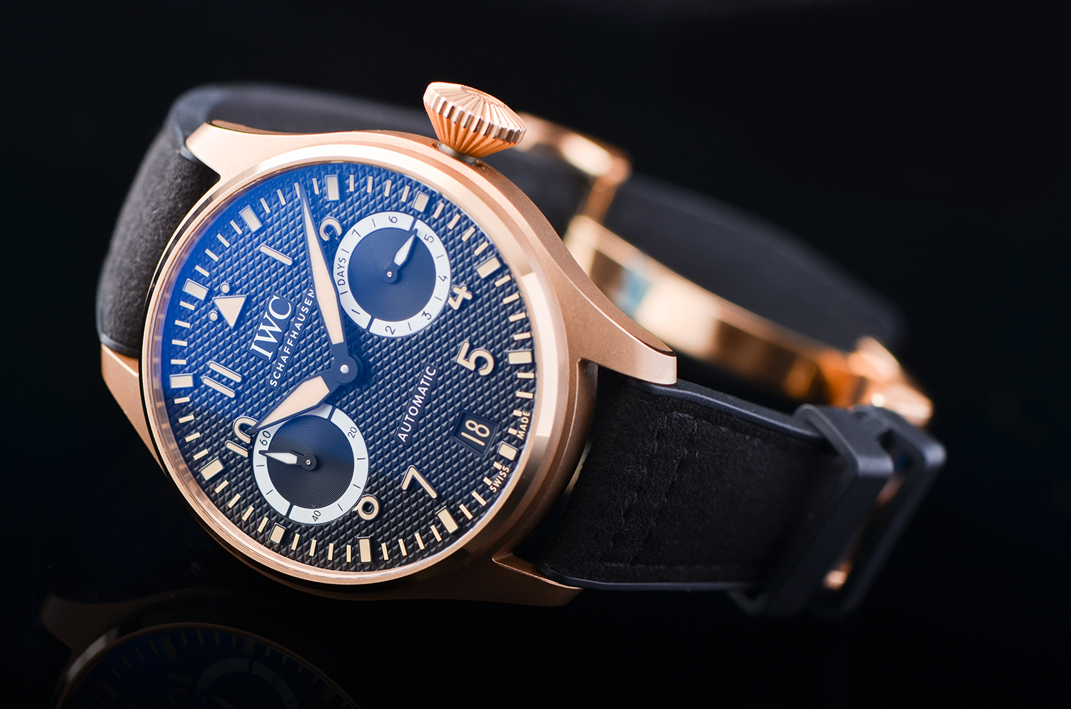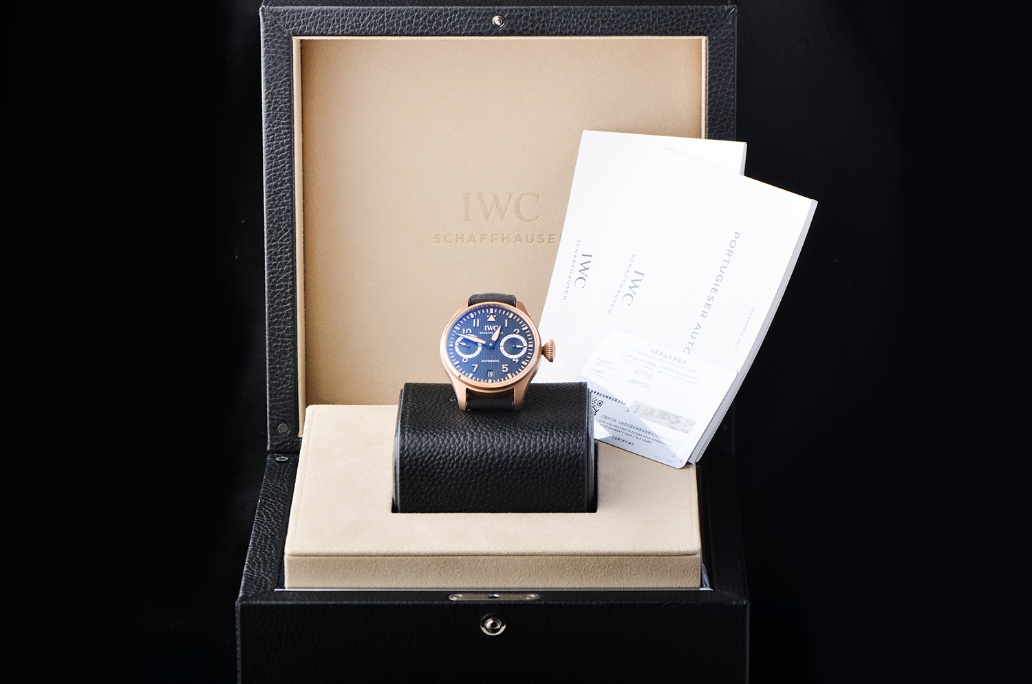 搭载 IWC 自制 52010 系列自动机芯,佩拉顿上链系统 + 陶瓷组件,稳定耐用。