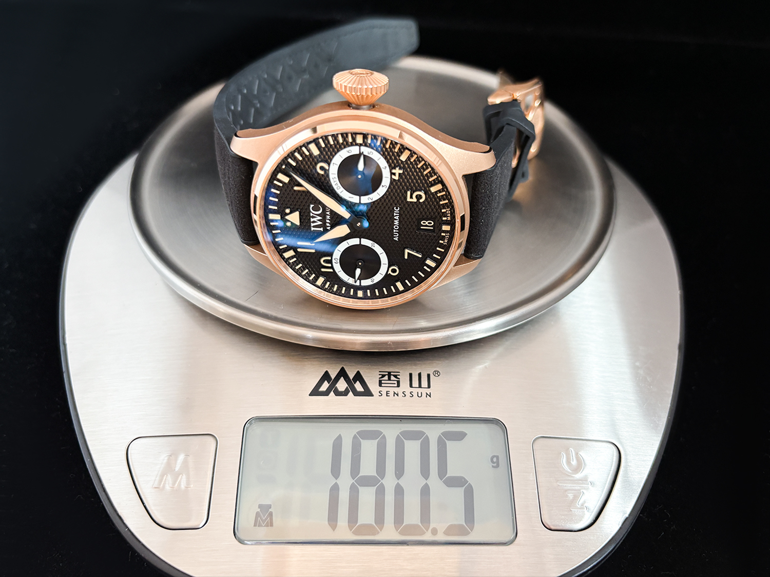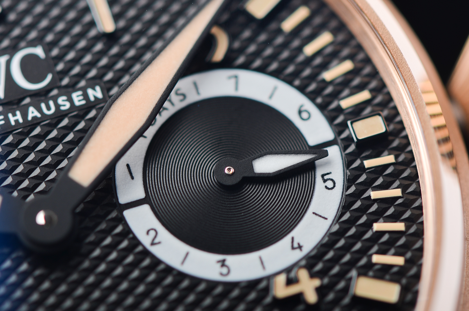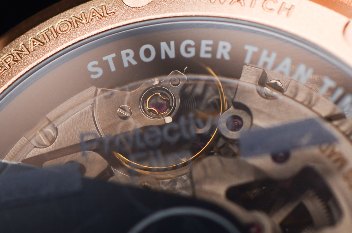 表壳采用 IWC 独家研发的 18K Armor Gold® 硬金,硬度远高于传统K金,不仅亮泽通透,更能经得住日常佩戴的磨损。