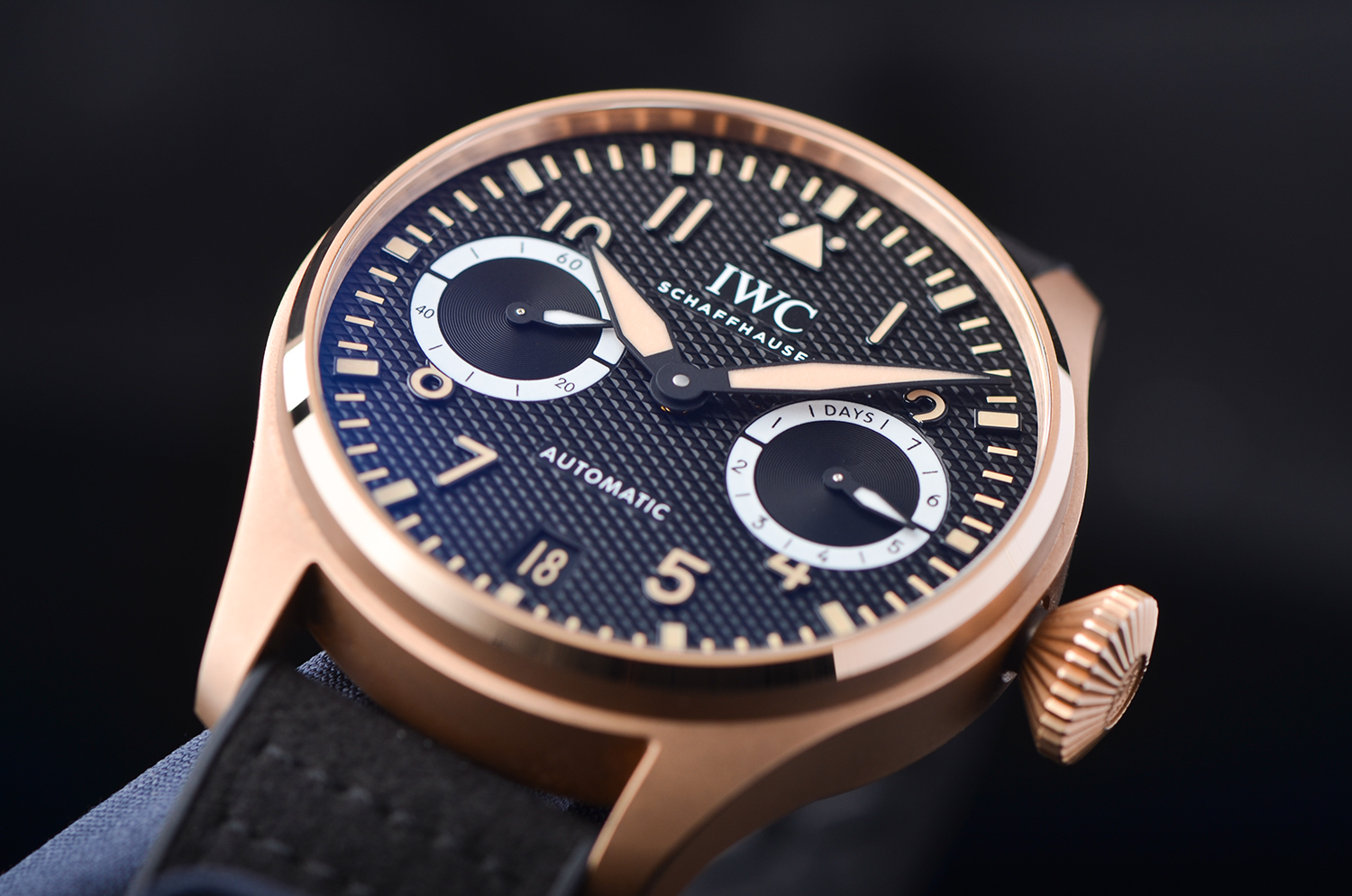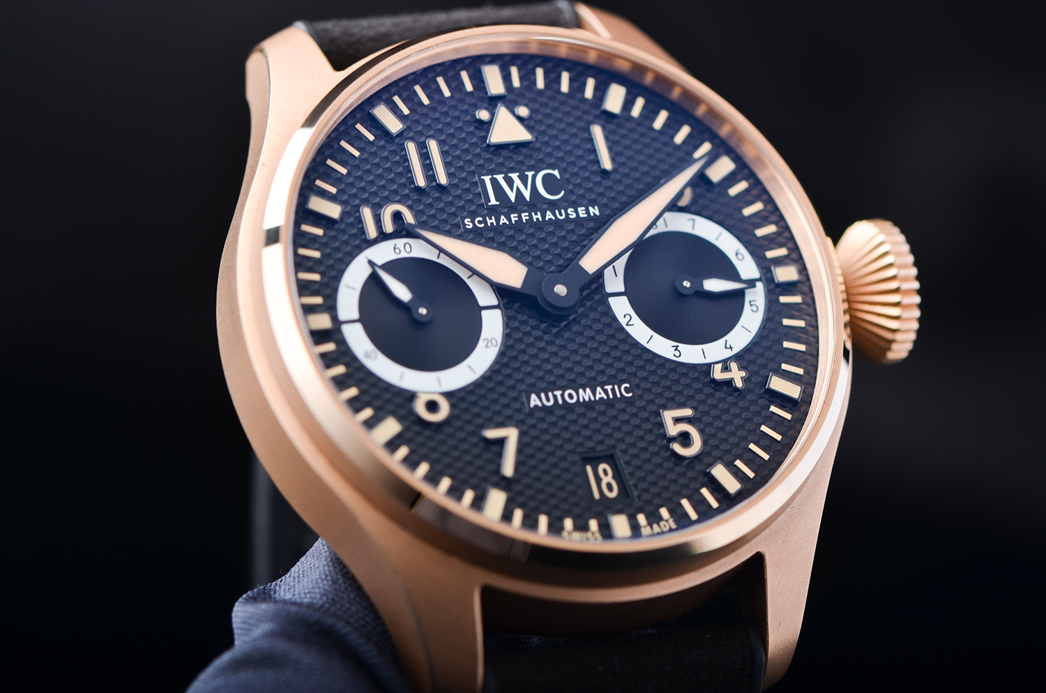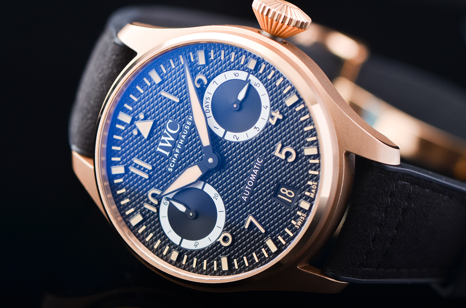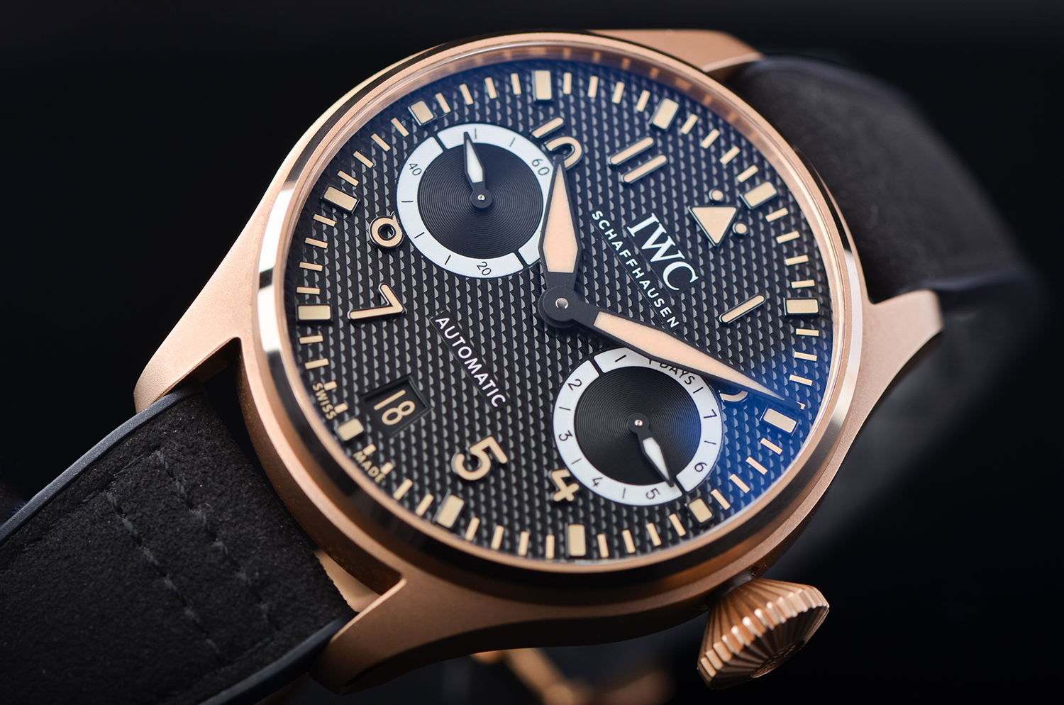 表壳采用 IWC 独家研发的 18K Armor Gold® 硬金,硬度远高于传统K金,不仅亮泽通透,更能经得住日常佩戴的磨损。