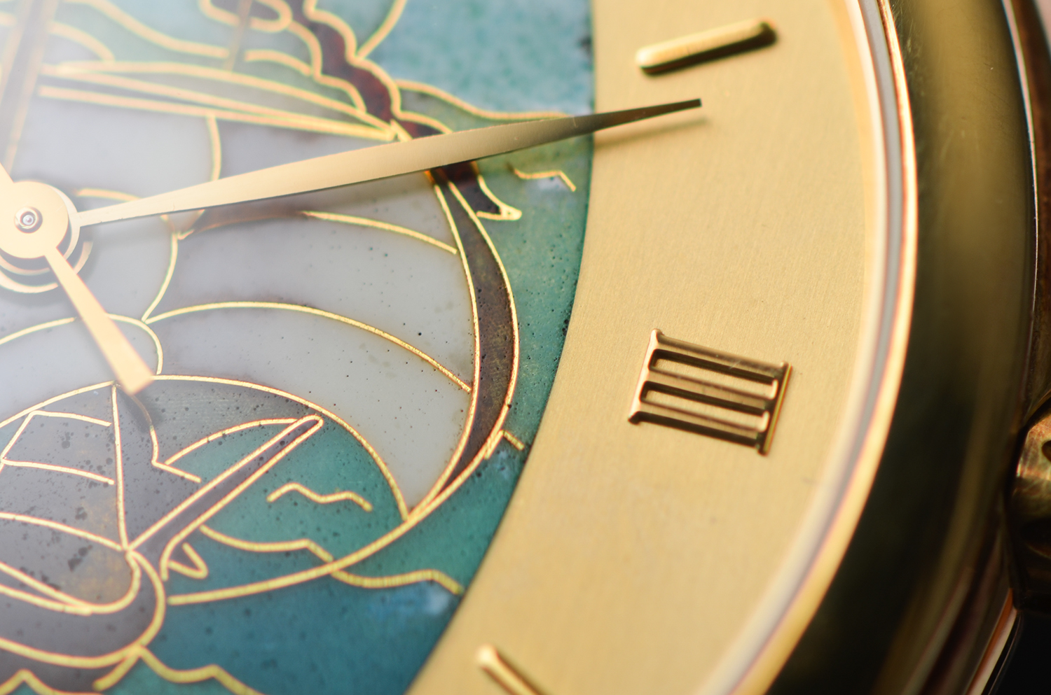 这不是印刷表盘,而是大师级 掐丝珐琅(Cloisonné Enamel):
