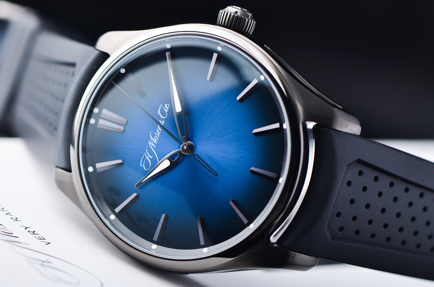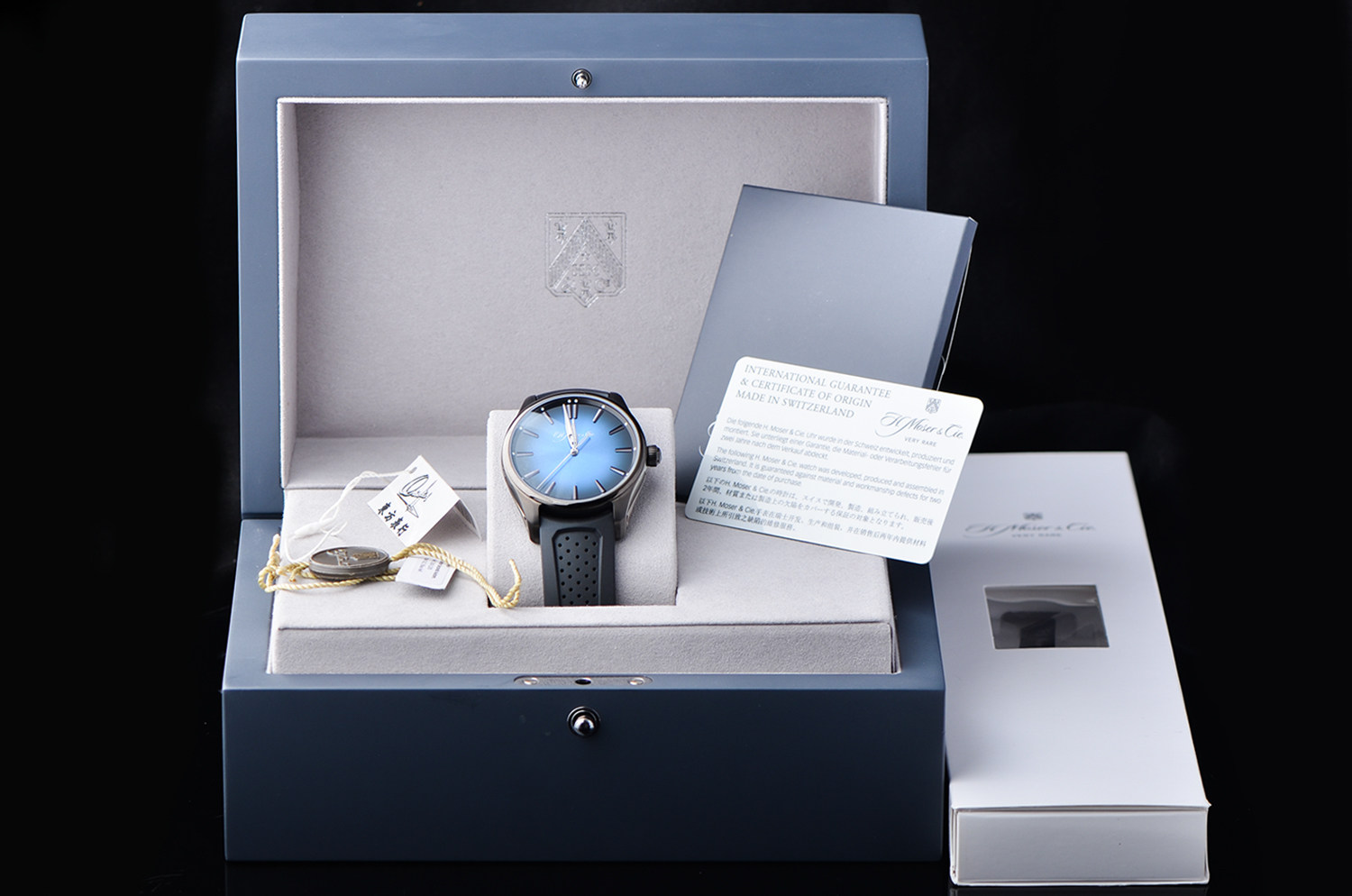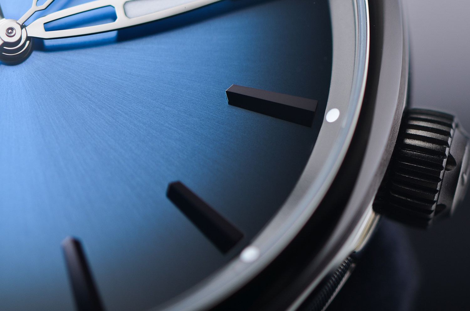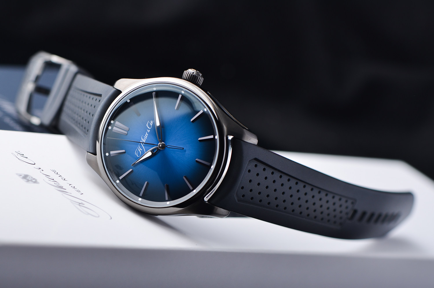 Funky Blue 烟熏蓝渐变表盘,由中心向外逐渐加深,随着光线流转呈现出极强的层次感——这是亨利慕时最具辨识度、也最难被复制的美学语言。低调,却极具张力。