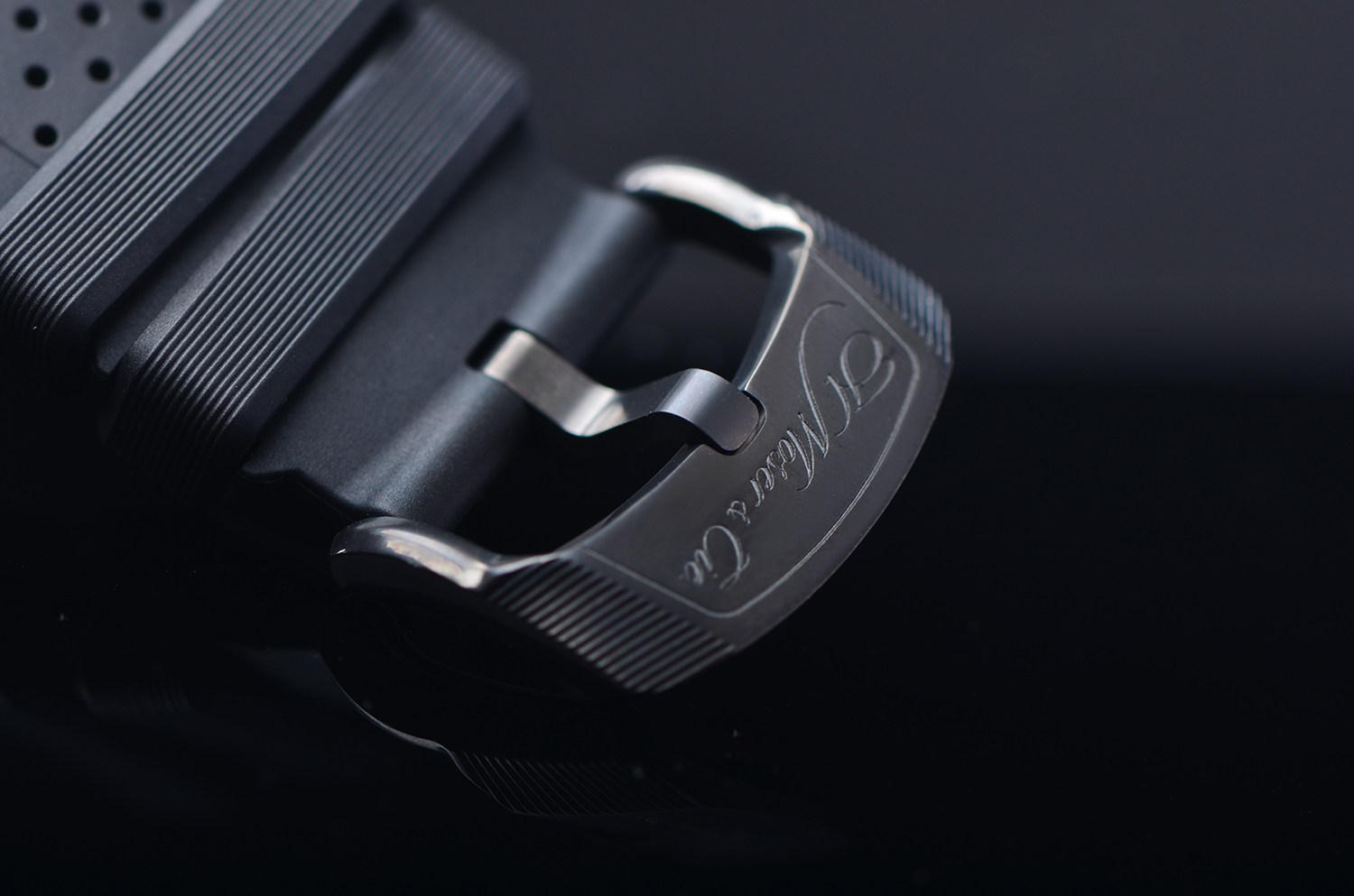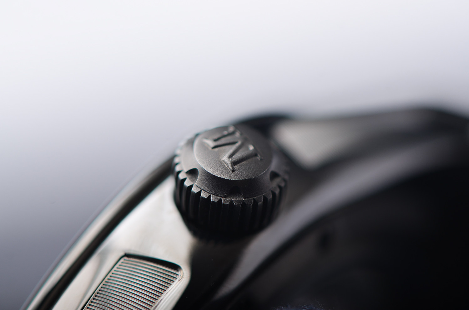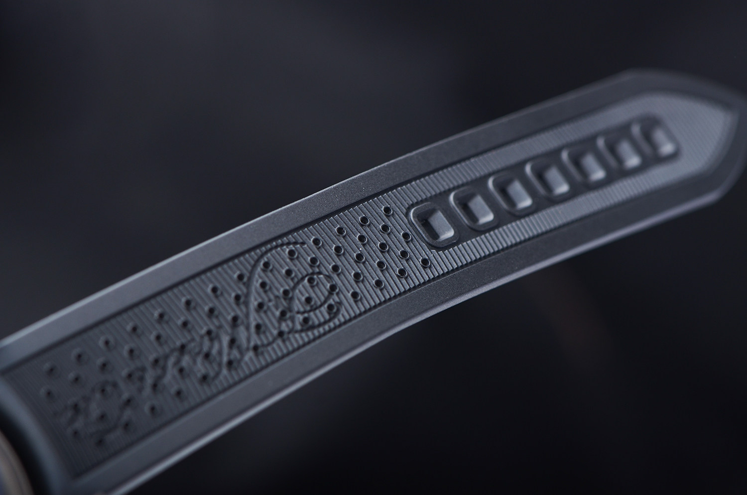 42.8MM 精钢表壳搭配 DLC 黑色涂层,兼顾运动感与高级质感;