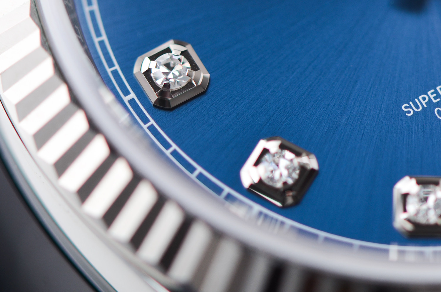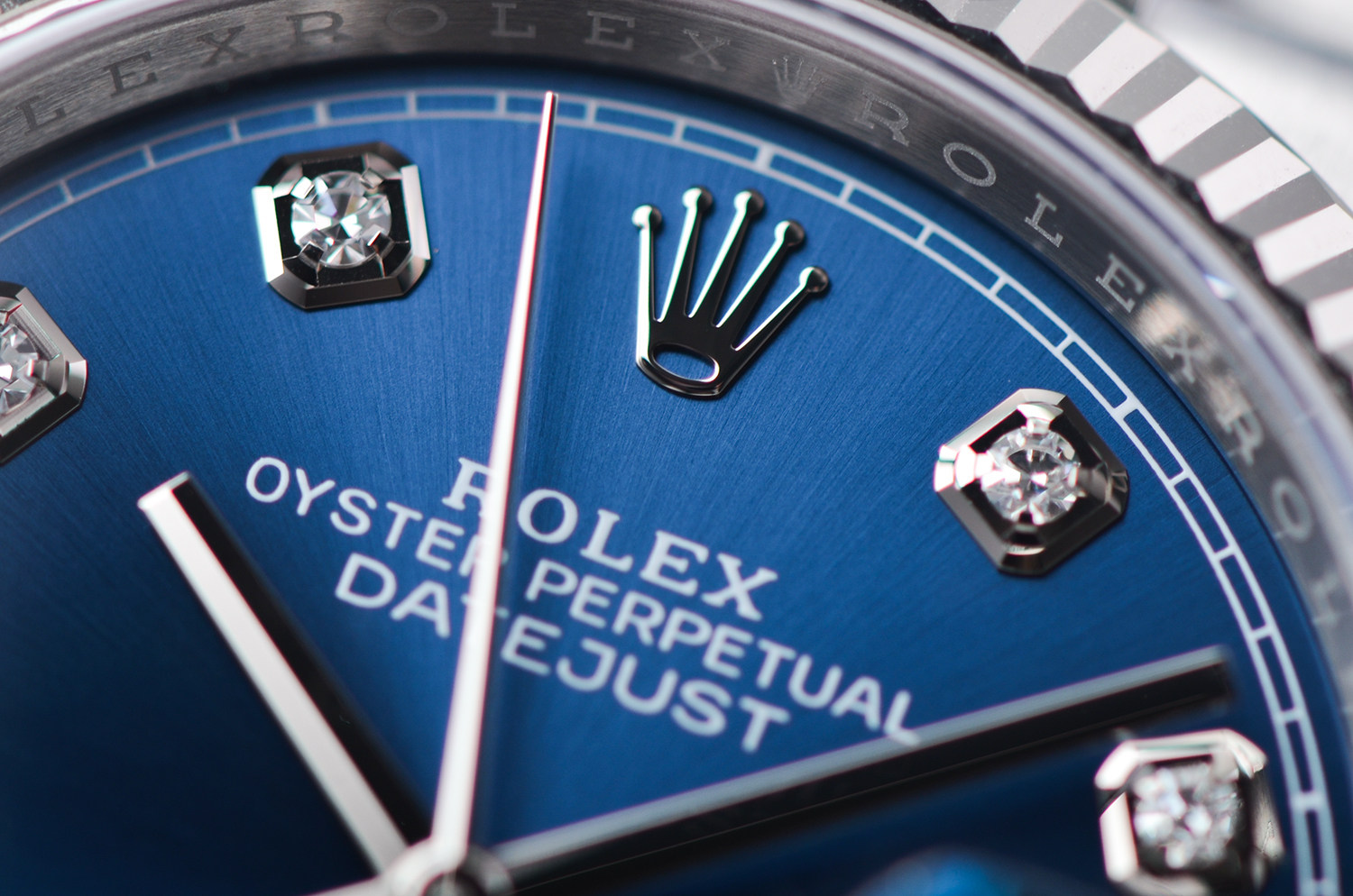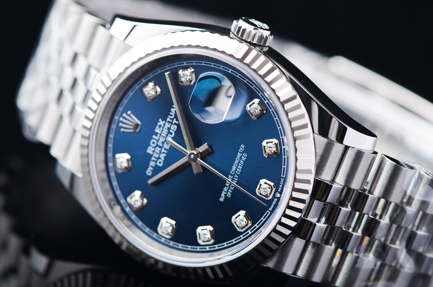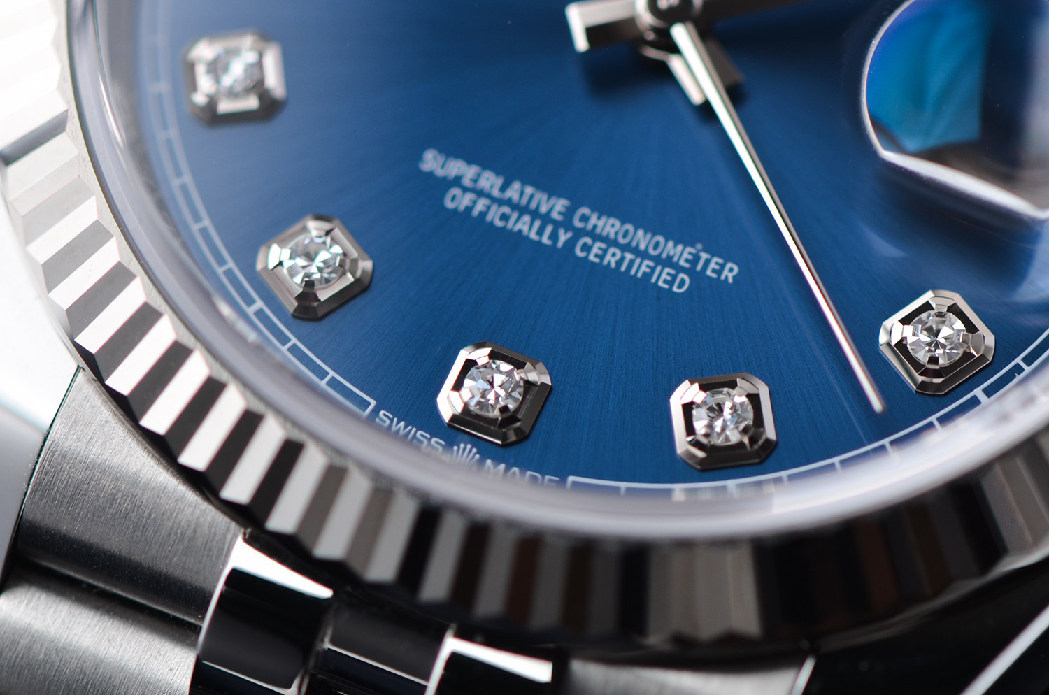 搭配 亮蓝色太阳放射纹钻石表盘,在光线流转间呈现出层次丰富的高级光泽,既优雅又不失存在感。