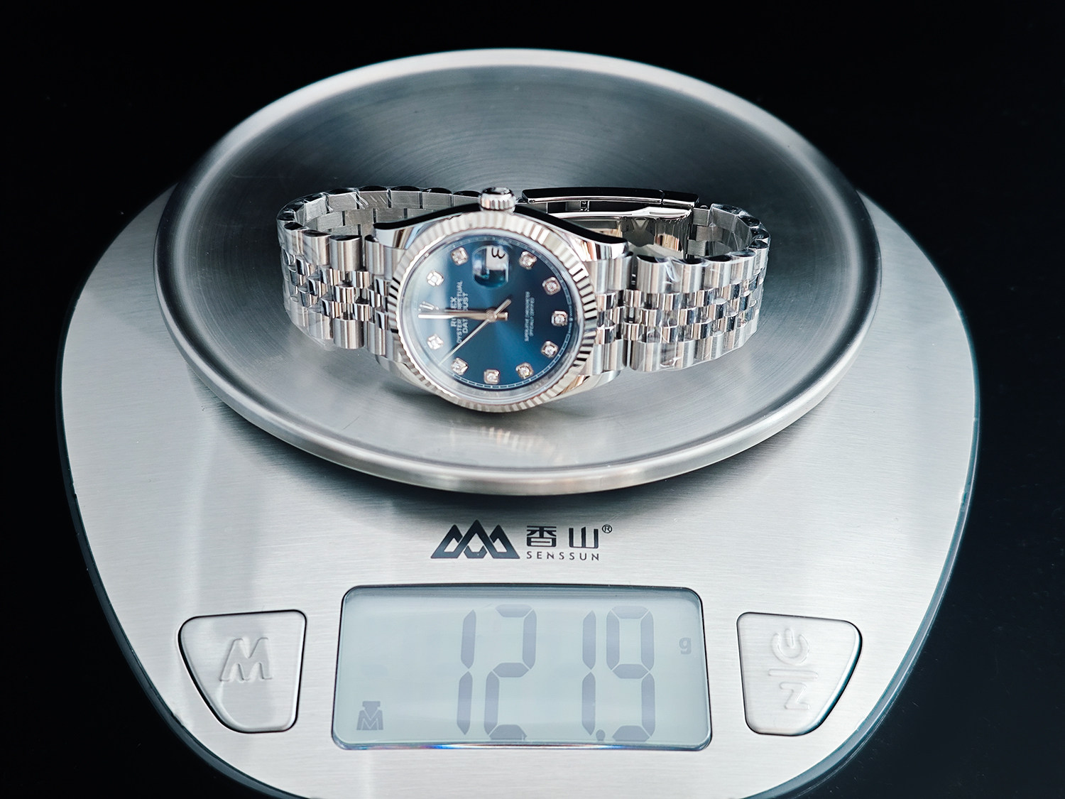 新款日志型白金圈蓝盘刻度钻36MM自动钢带男表
