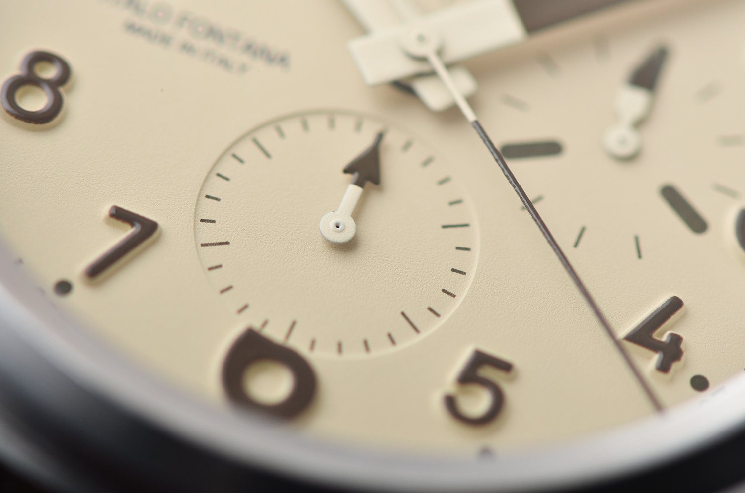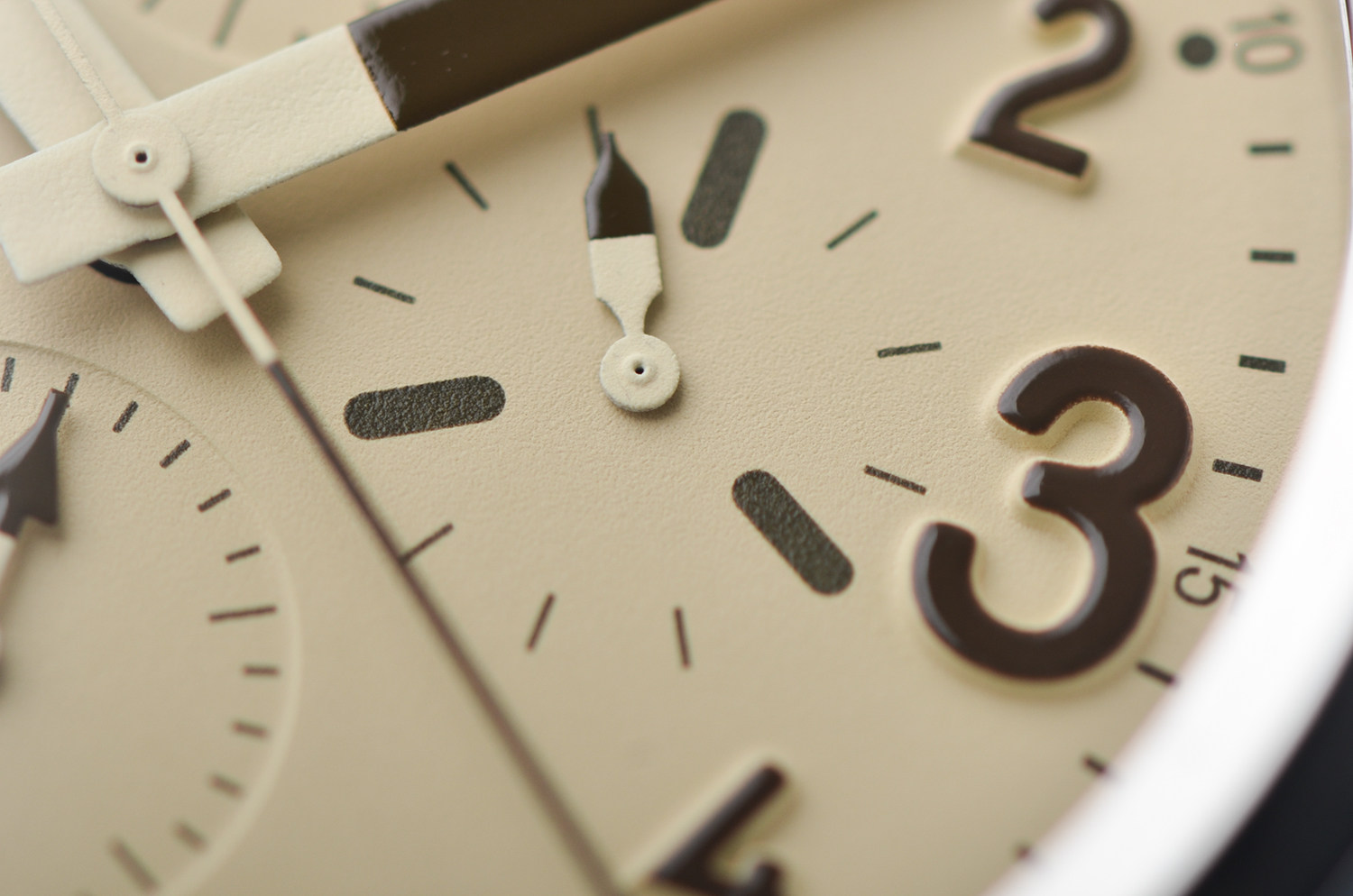 温润的米黄色盘面,带有浓厚的复古军表与航空仪表气质,