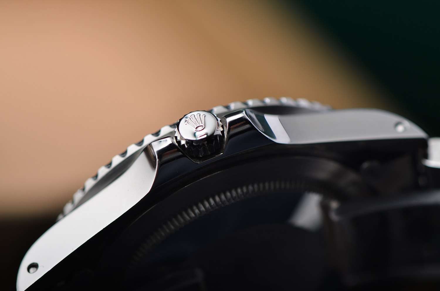 表盘:Glossy Dial 光面黑盘,白金包边夜光时标