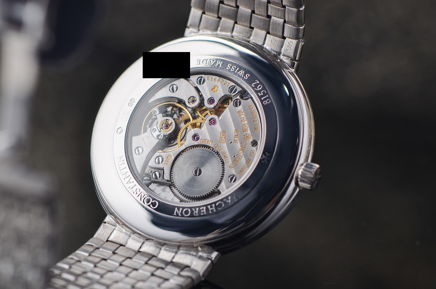 腕表内部搭载 江诗丹顿自制手动上链 Cal.1400 机芯,并通过极为严苛的 日内瓦印记认证。机芯打磨一丝不苟,从倒角、拉丝到日内瓦波纹,全部符合顶级制表标准——这是江诗丹顿对“高级制表”四个字最直接的诠释。