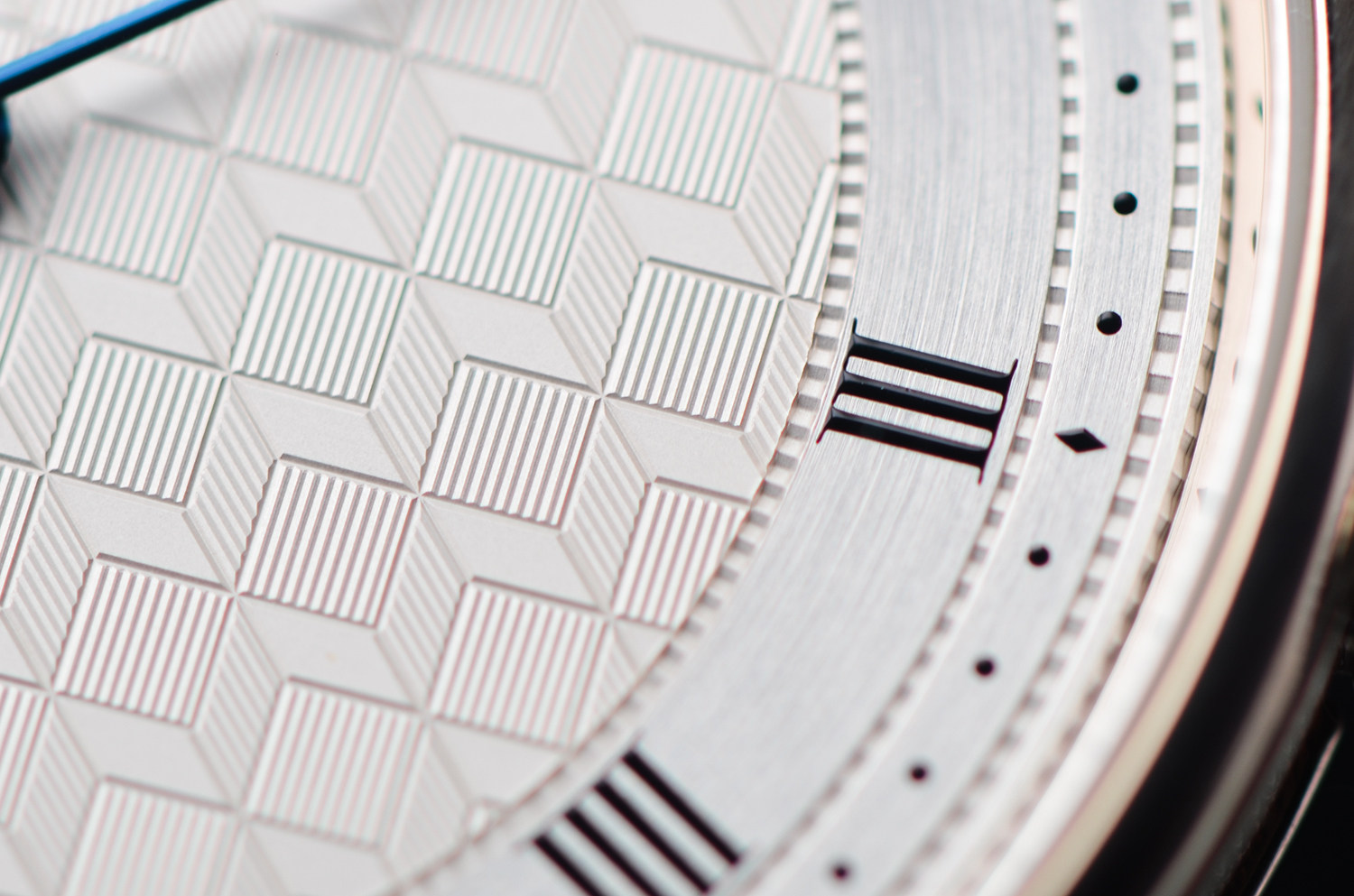 表盘: 立体白金镀银镌刻表盘,罗马数字刻度,蓝钢鱼眼针