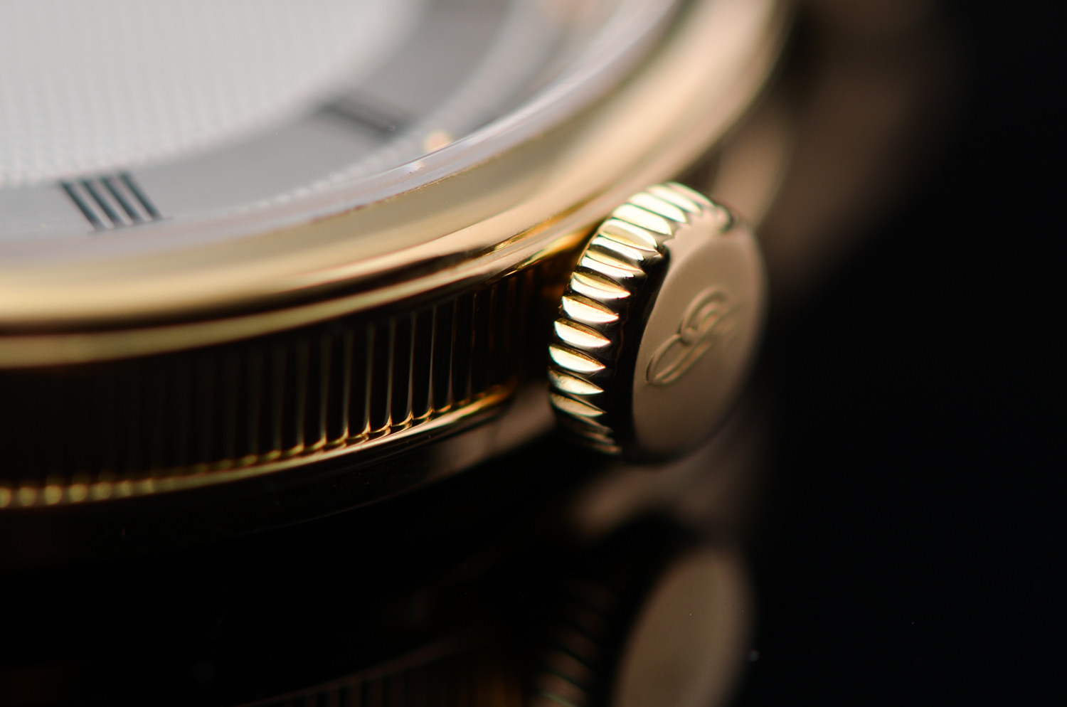 表壳:18K黄金钱币纹表壳及表扣