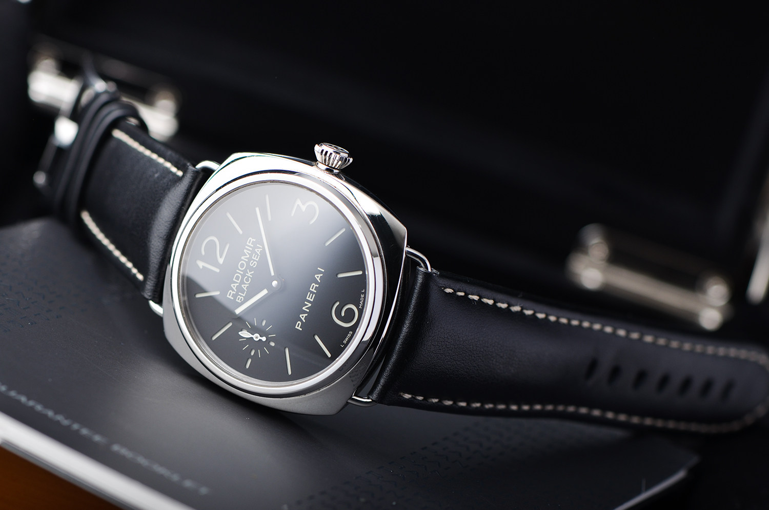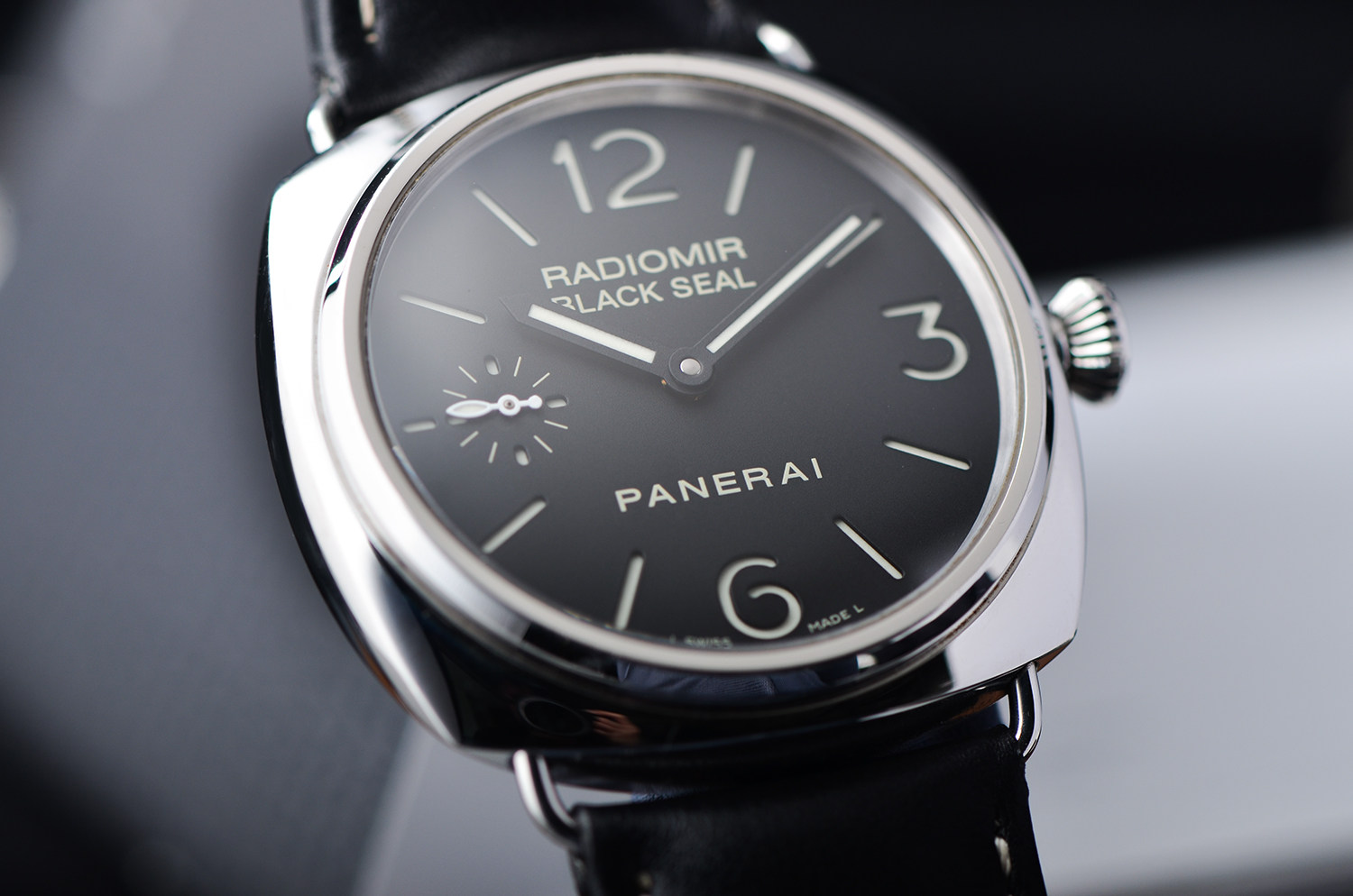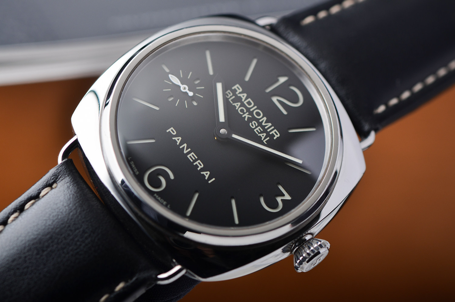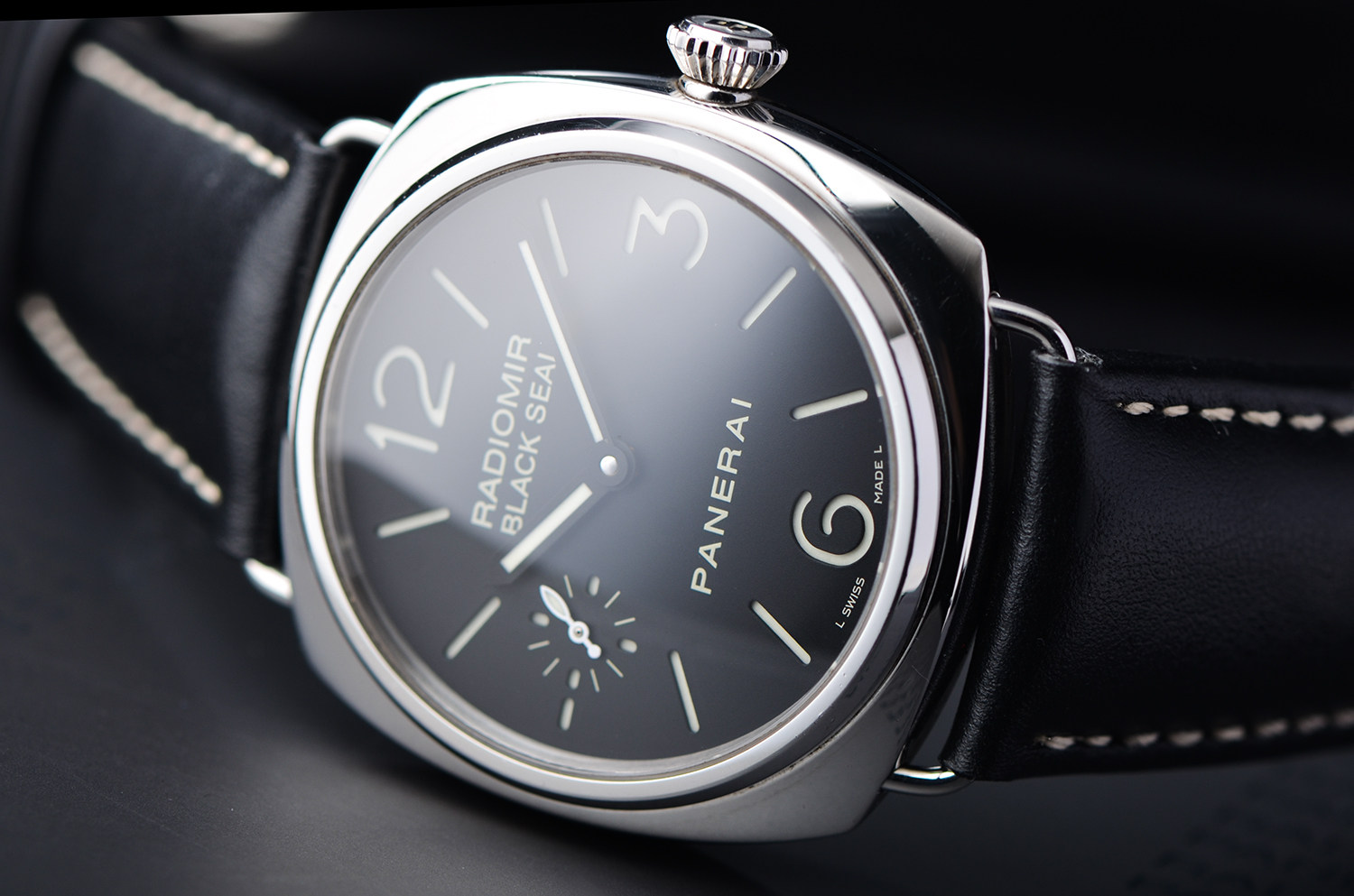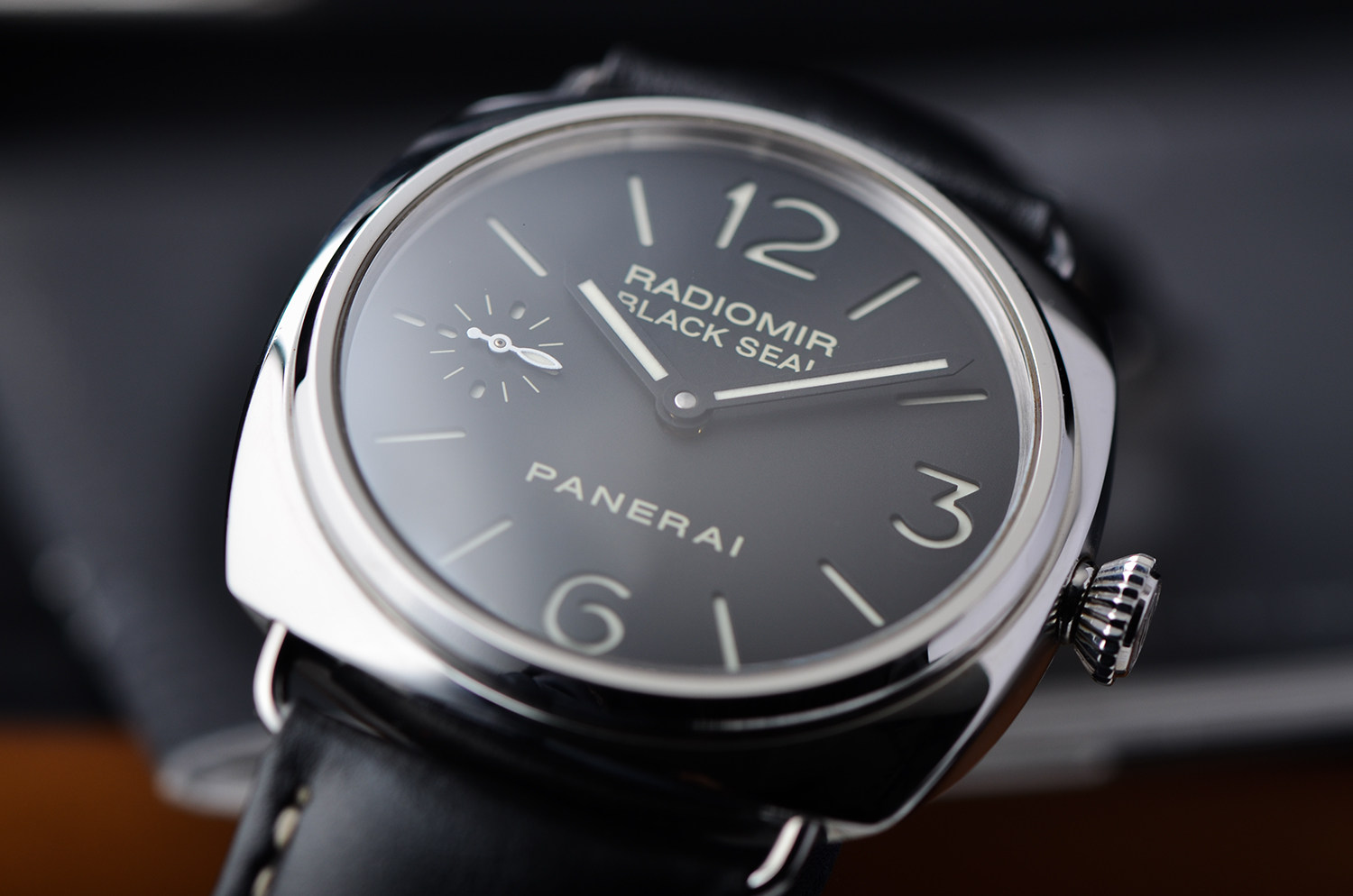 9点位小秒盘布局,是沛纳海最标志性的视觉语言。