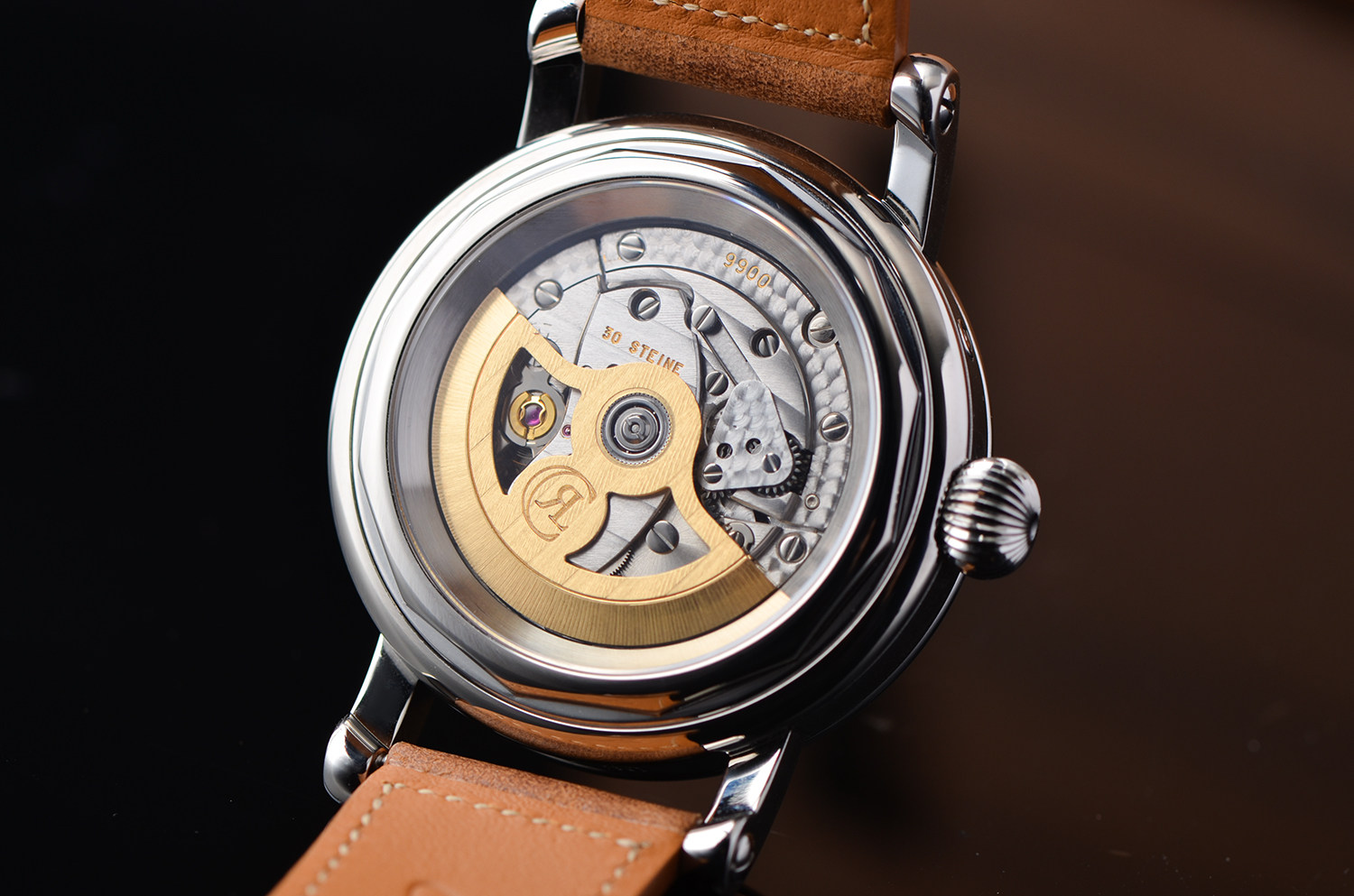透底设计可以欣赏精致的机芯打磨与运转结构,机械魅力十足。