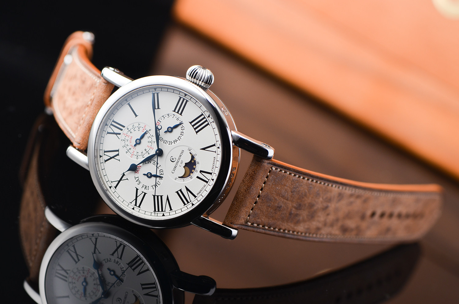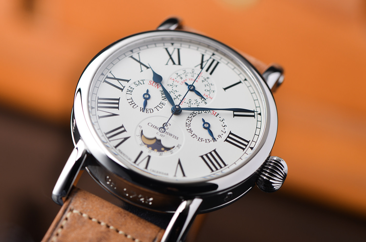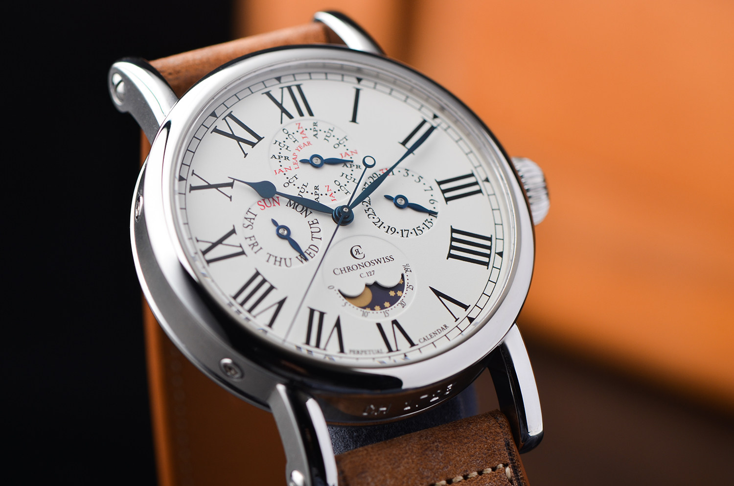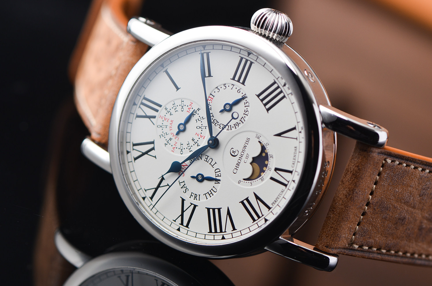 这枚 CH 1723 正是 Chronoswiss 极具代表性的复杂功能腕表之一。