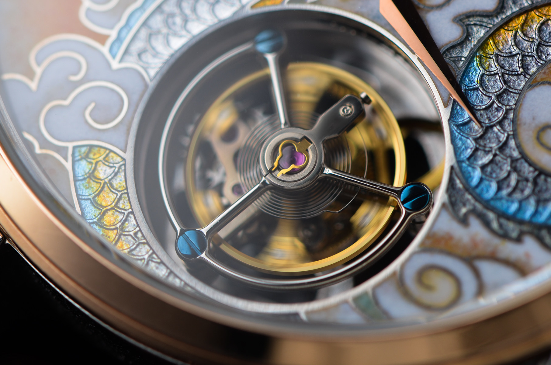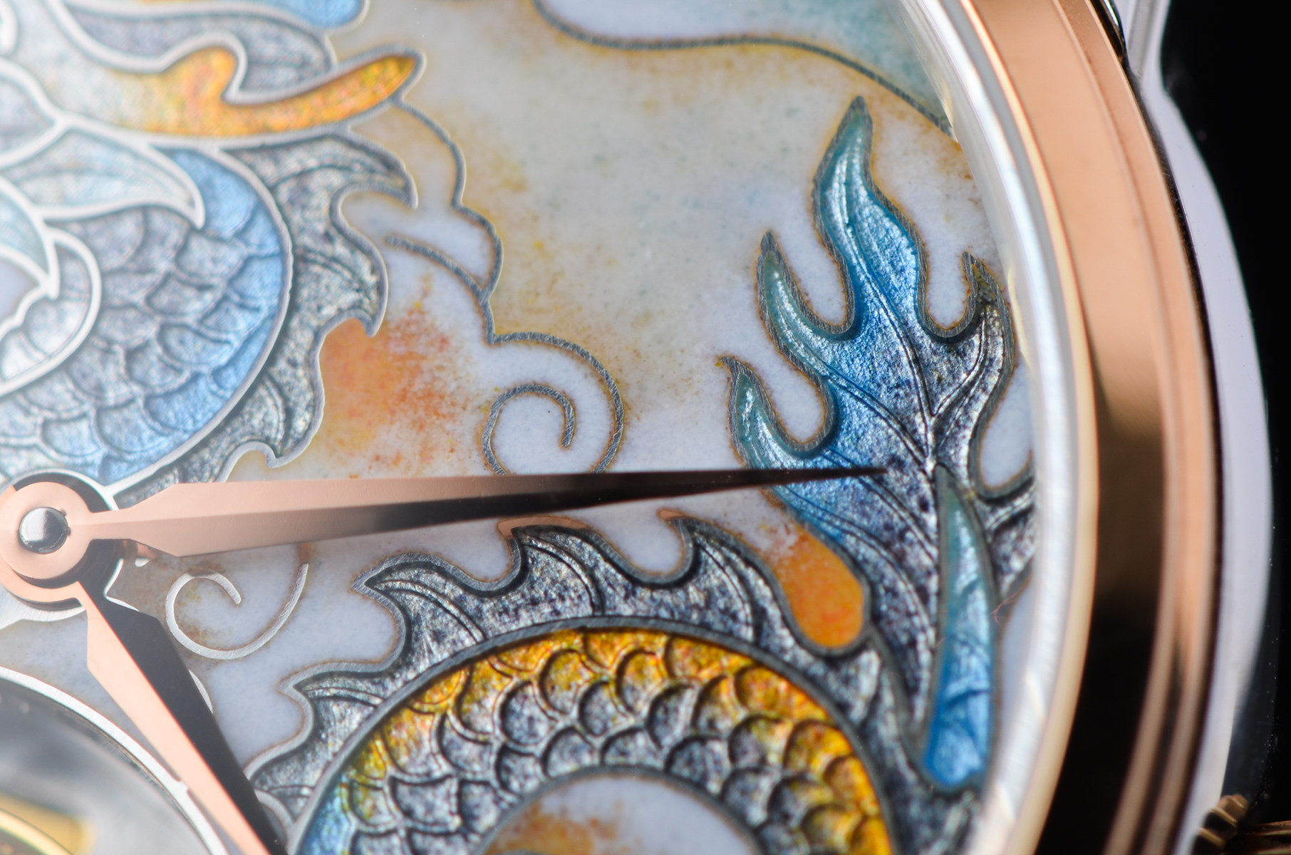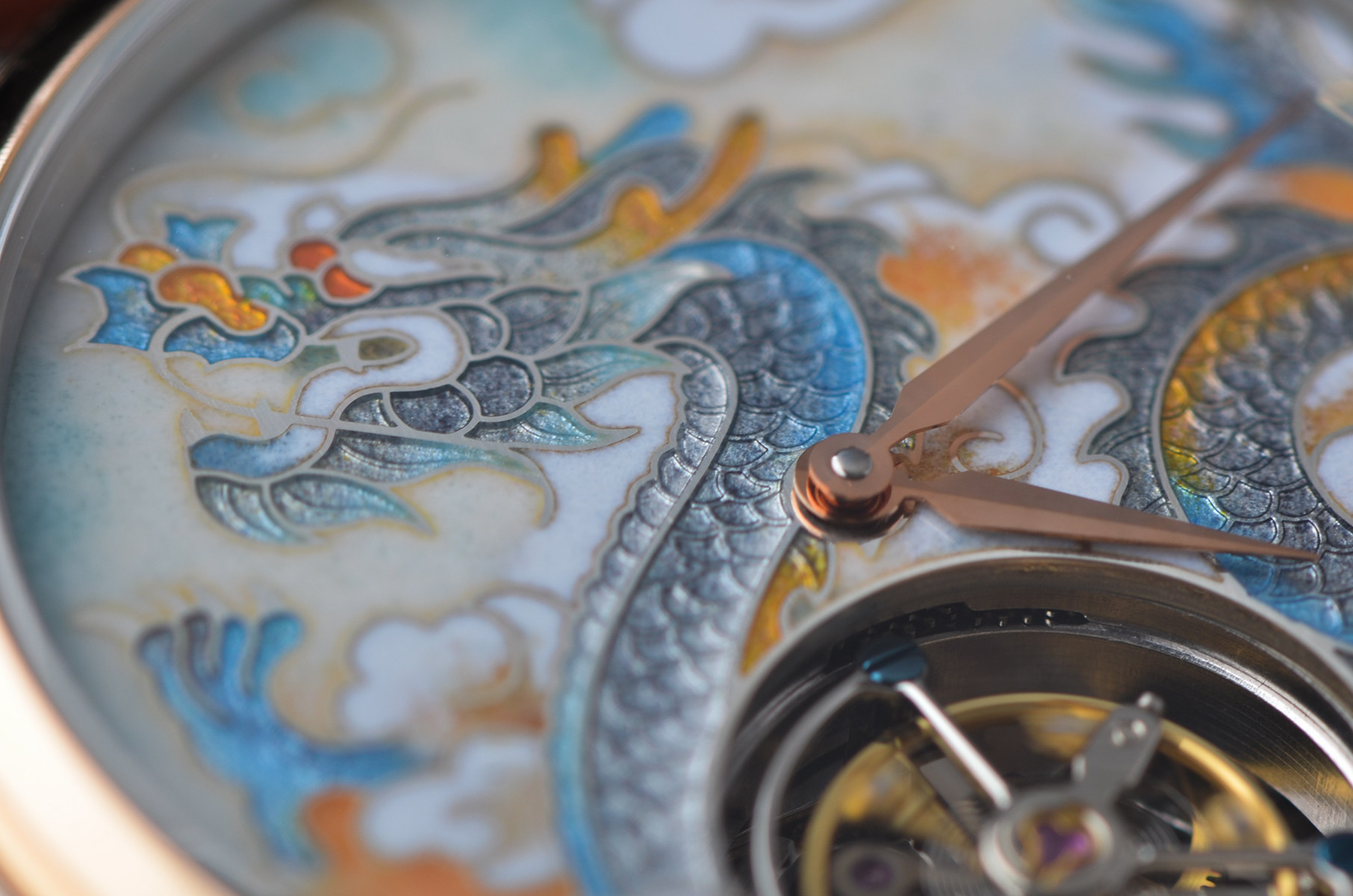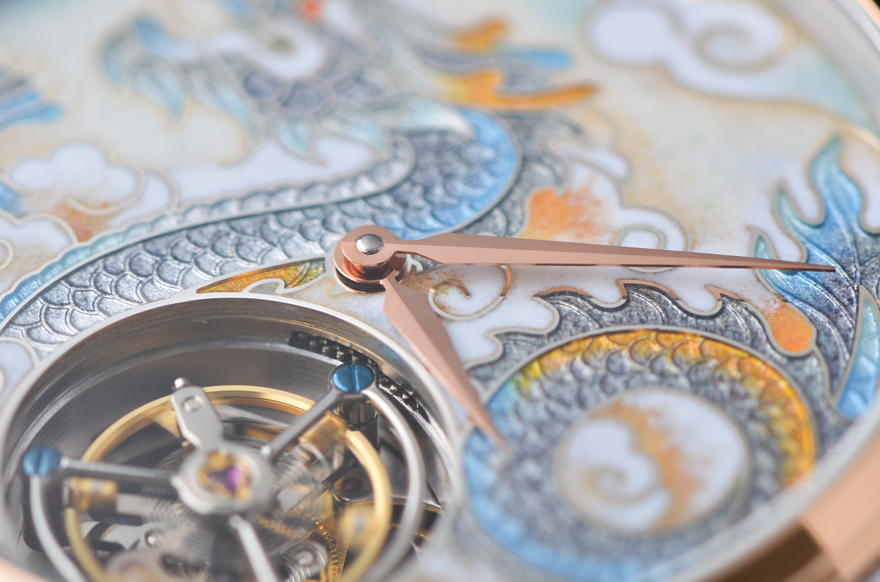 表盘: 掐丝珐琅祥云腾龙表盘,6点位陀飞轮装置