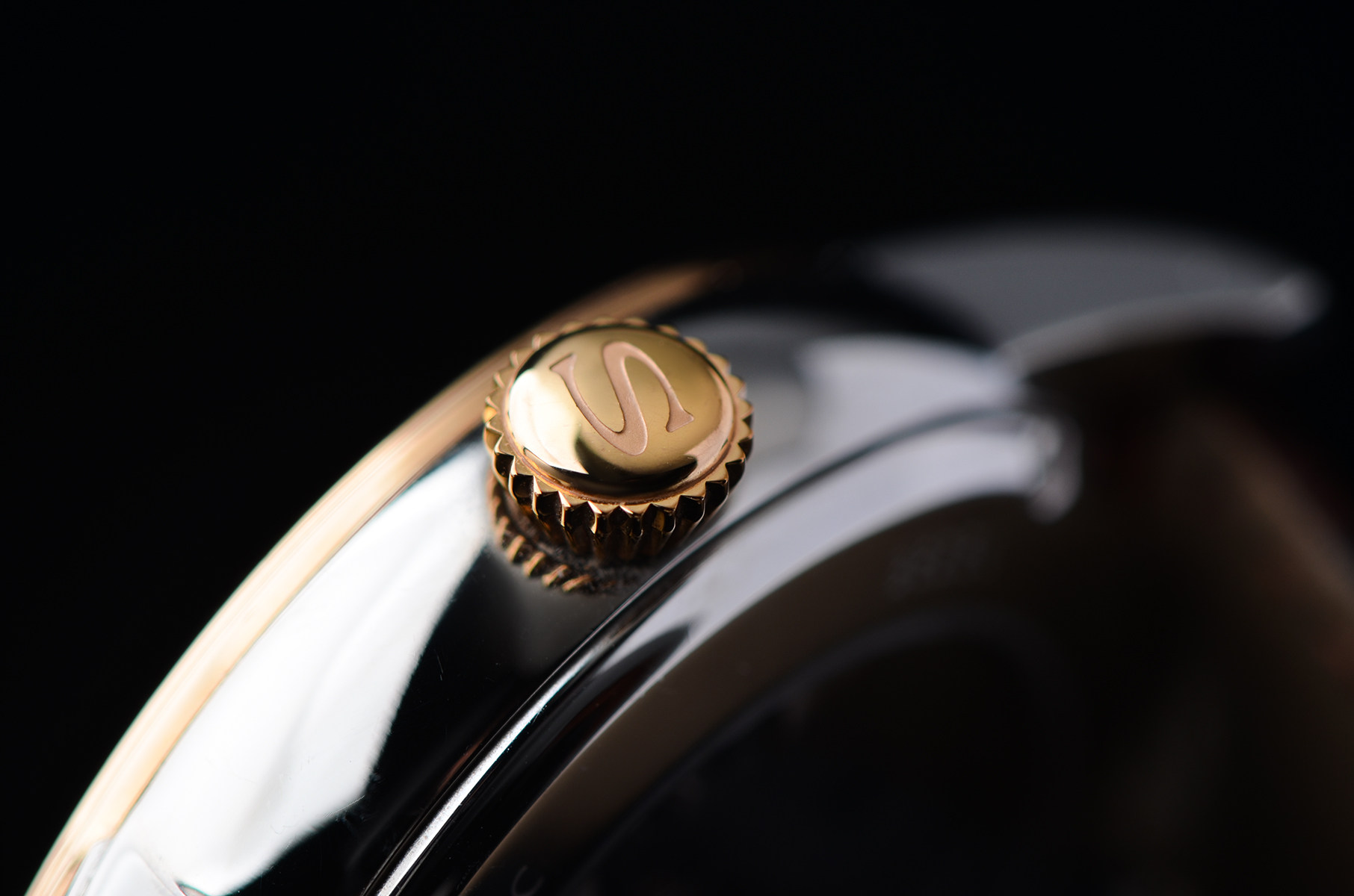 表壳:精钢表壳及表扣,玫瑰金表圈