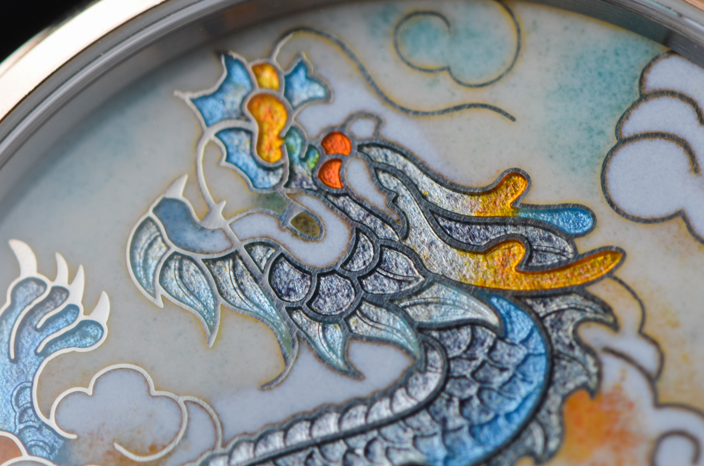 【售价9800RMB 掐丝珐琅祥云腾龙图案表盘,限量299枚】