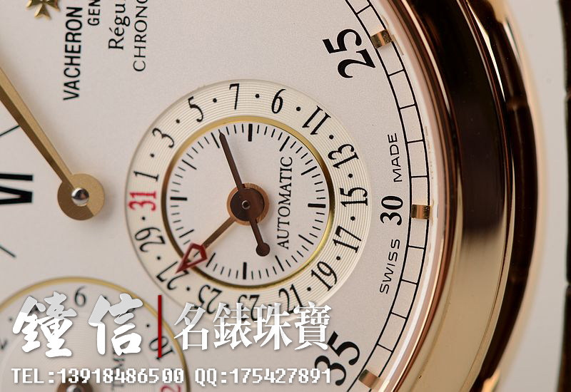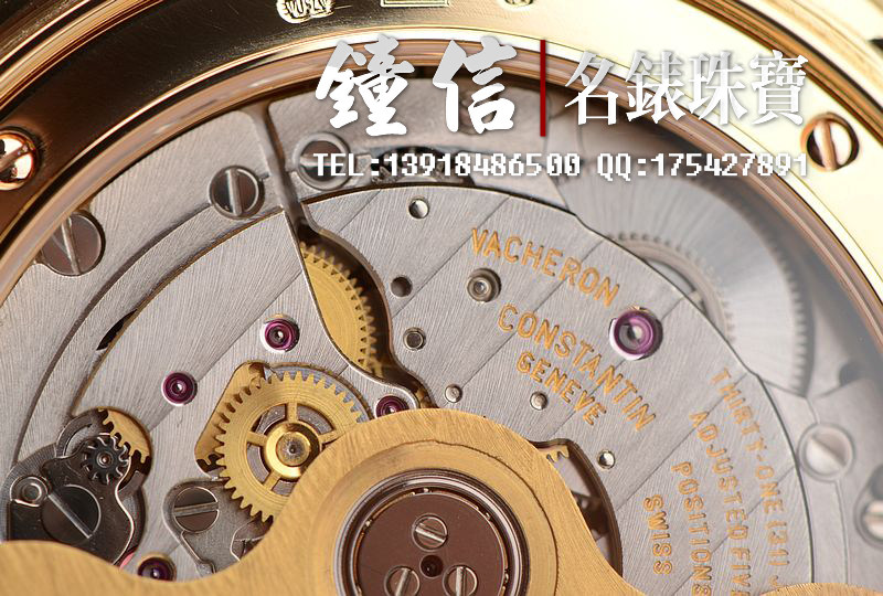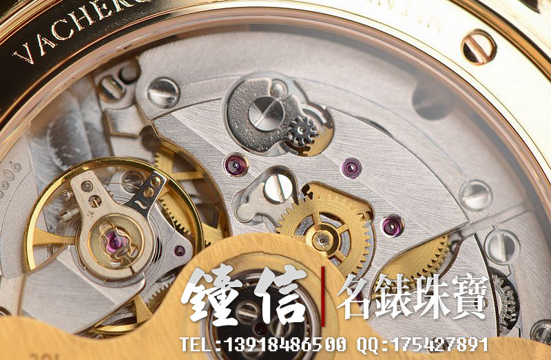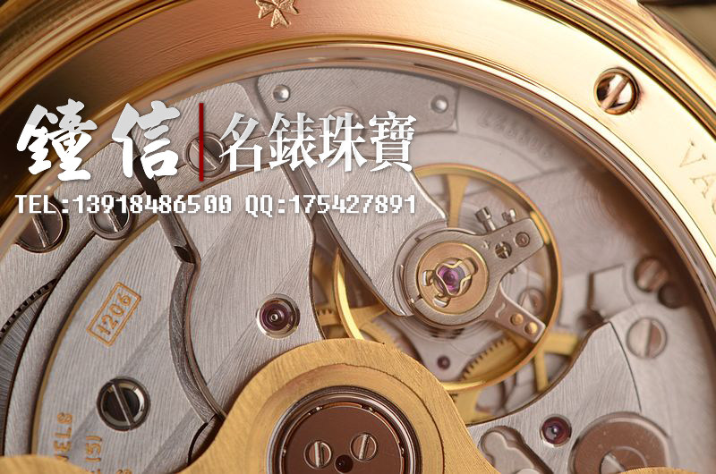 VC自产CAL.1206型机芯,自动上链,极其精致日内瓦手工条纹打磨,18K黄金自动摆陀,倒角抛光修饰。31钻,28800摆频,5方位校正,天文台认证机芯有独立签名编号,动力储备约65小时。走时状态极佳。