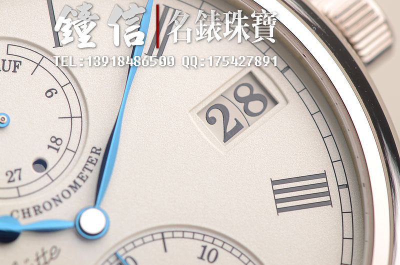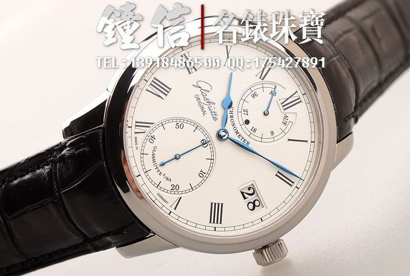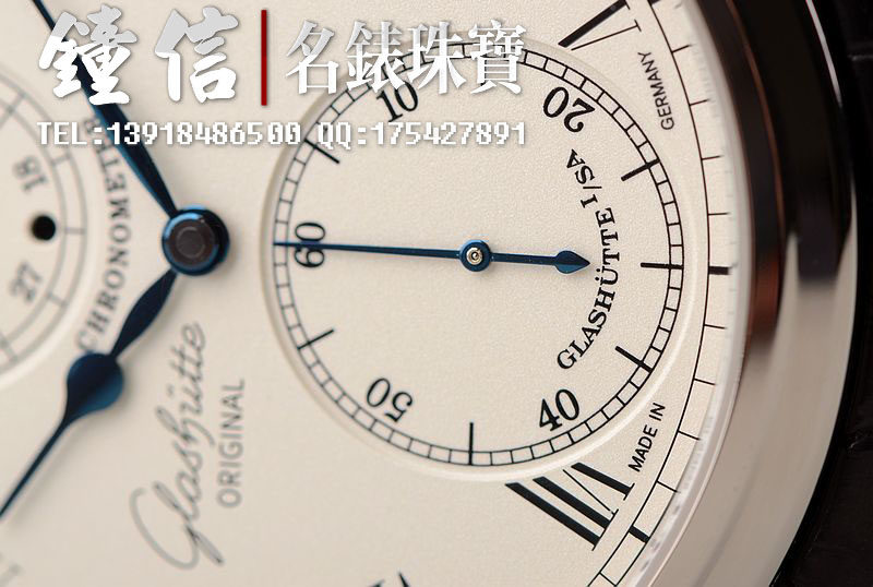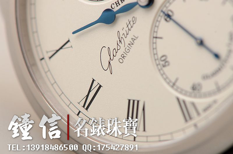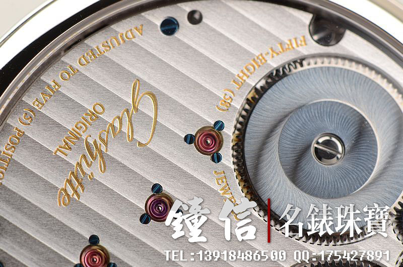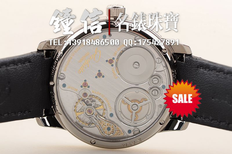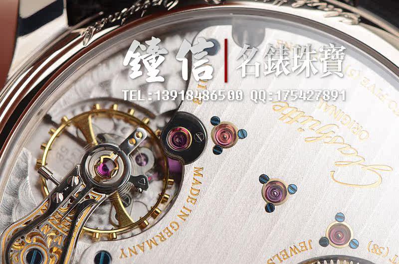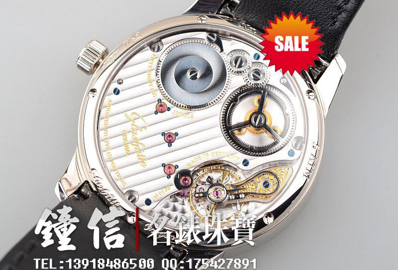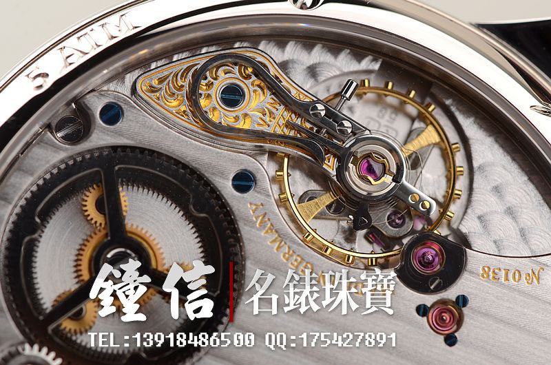 GO自产的CAL.58-01机芯,属于该品牌的高级别机芯,获德国格拉苏蒂天文台认证。手动上链,58钻,摆频28800。动力储存约45小时。德式3/4大夹板,全手工精致打磨及倒角抛光处理,18K黄金游丝摆轮,鹅颈微调功能,5方位校正,黄金套筒固定红宝石轴承。基本汇集所有德式高级机芯必备元素。走时状态极佳。