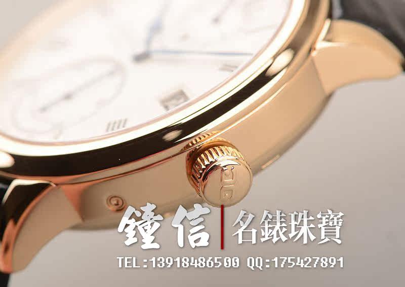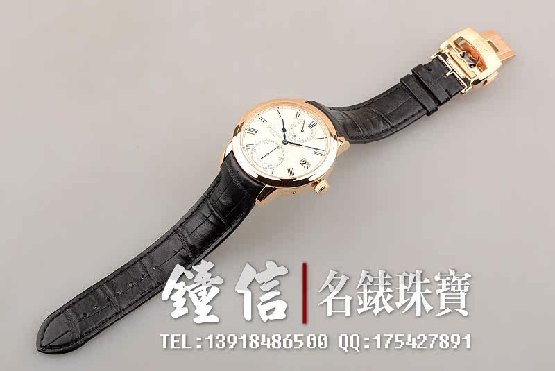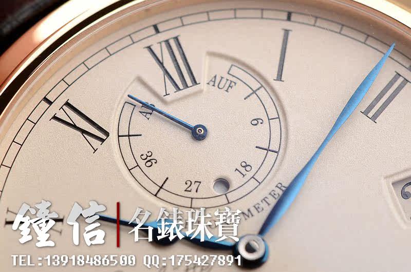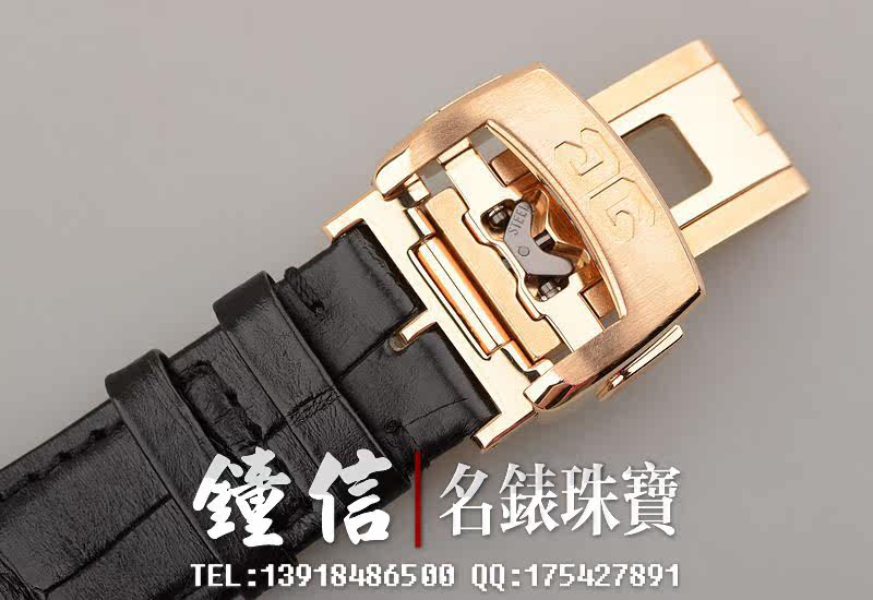 18K玫瑰金表壳及折叠式表扣,圣伯纳狗头印记。蓝宝石水晶镜面及底盖。后配全新黑色短吻鳄鱼皮表带。立体银白色细喷砂表盘。优雅的蓝钢桃心指针。3时位大日历窗显示日期,12时位动力储存及昼夜显示,6时位独立小秒针。口径42MM*12.3MM。防水50M。