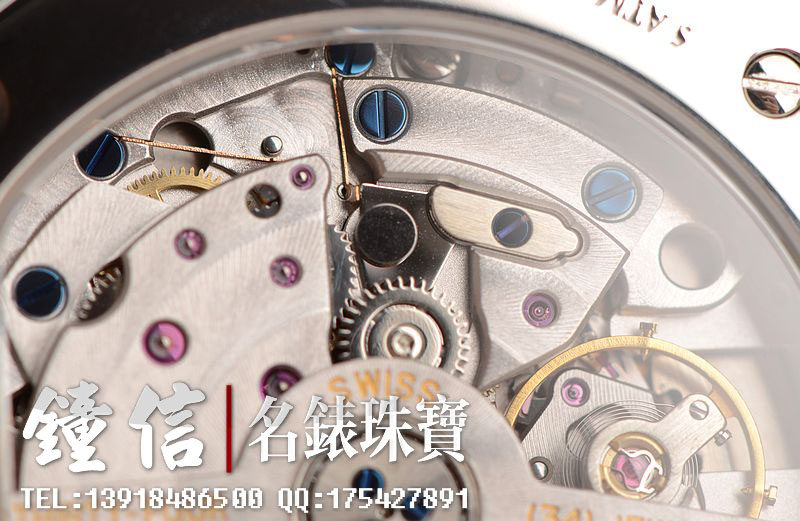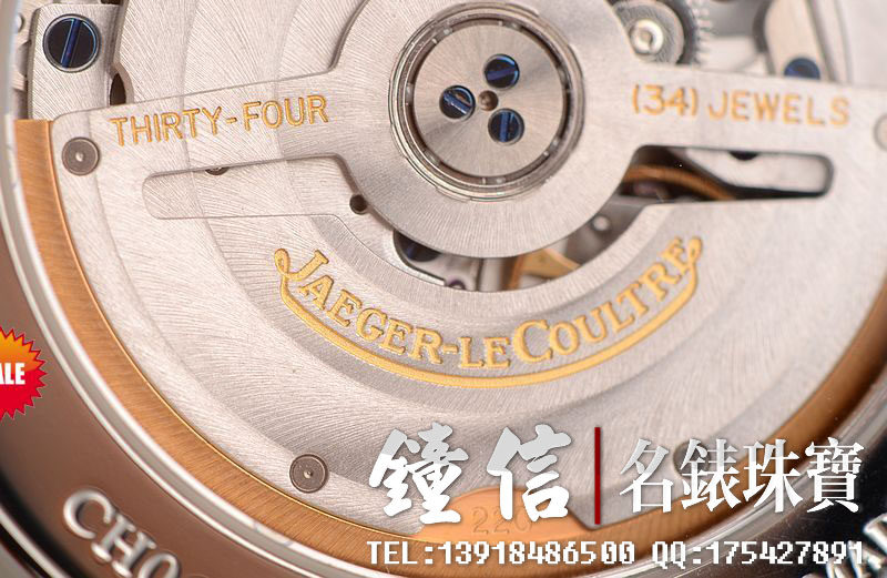积家CAL.896型机芯,极其精致日内瓦条纹打磨,34钻,摆频28800,动力储存约43小时。22K玫瑰金自动陀边配重。走时状态极佳。