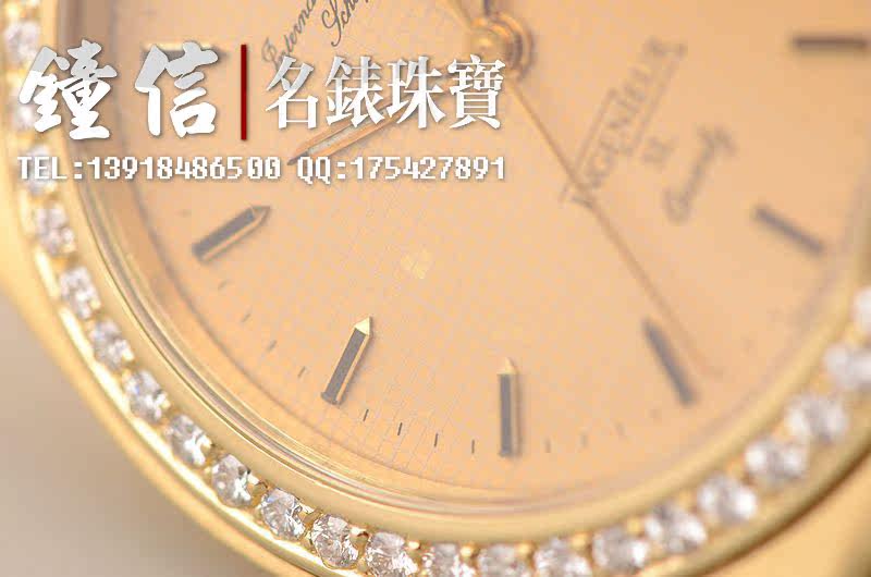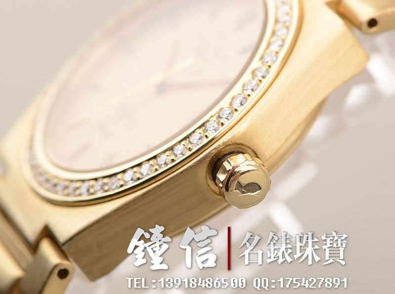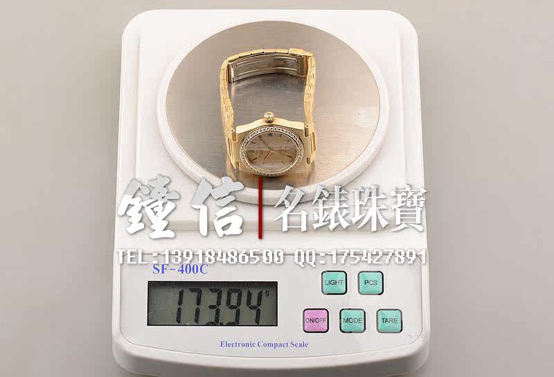 18K黄金表壳,18K白金折叠式表扣。女皇头印记。原厂镶钻表圈。蓝宝石水晶镜面,立体香槟金色表盘,黄金黑色石材刻度,黄金指针,3点位日历显示功能。口径34MM*9MM,原先是男表SIZE,按现在的戴表的定义,女士完全可以佩戴。防水30M。