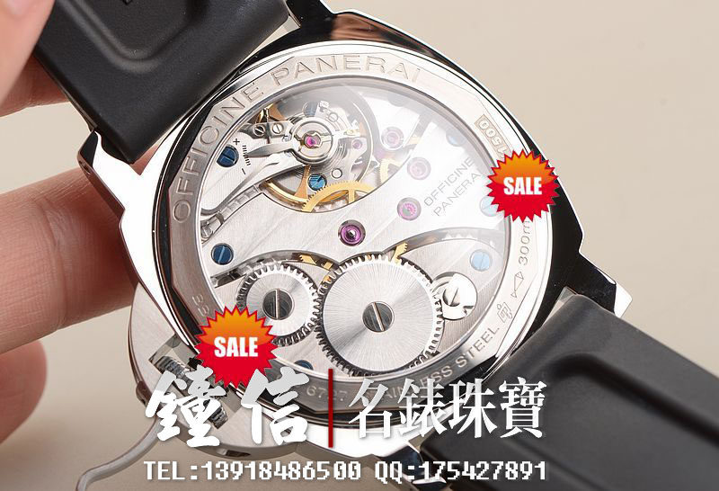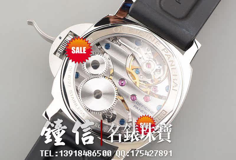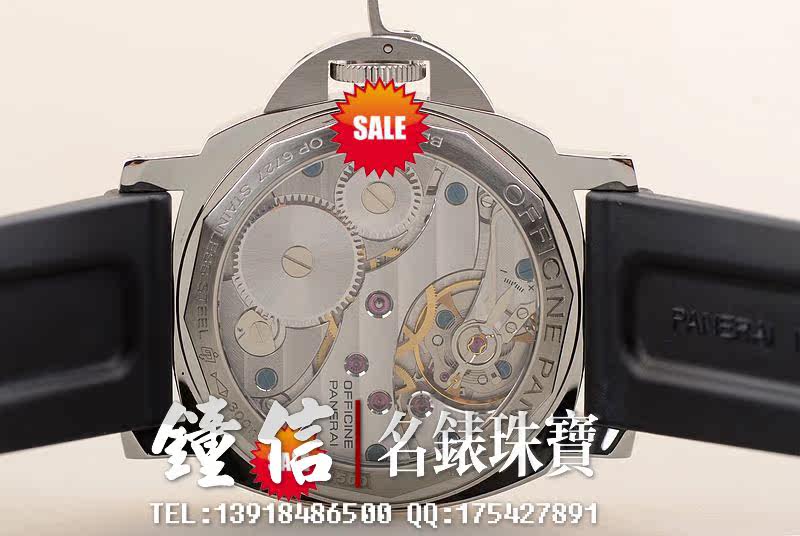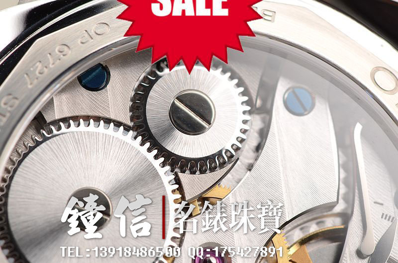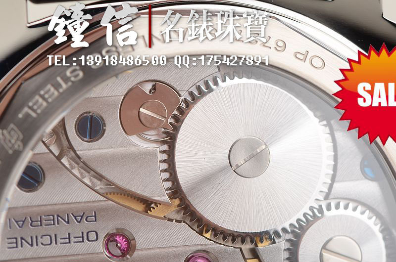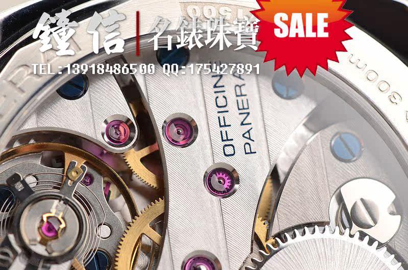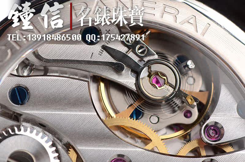 沛纳海OPXI型机芯,手上链,天文台认证机芯,极其精致日内瓦条纹打磨,倒角抛光修饰。17钻,摆频21600,Incabloc避震,动力储存约56小时,走时状态极佳。