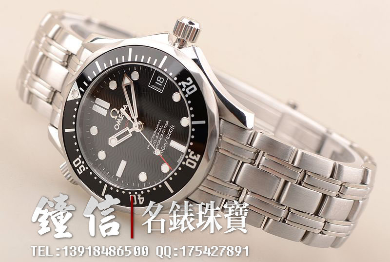 精钢表壳及链带,折叠式表扣。黑色可旋转夜光计时表圈,10点位表冠排氦气阀门装置。蓝宝石水晶镜面,立体黑色波浪纹表盘,夜光指针及刻度,3点位日历显示功能。旋入式防水表冠。口径36.25MM*12MM,防水300M。