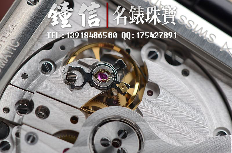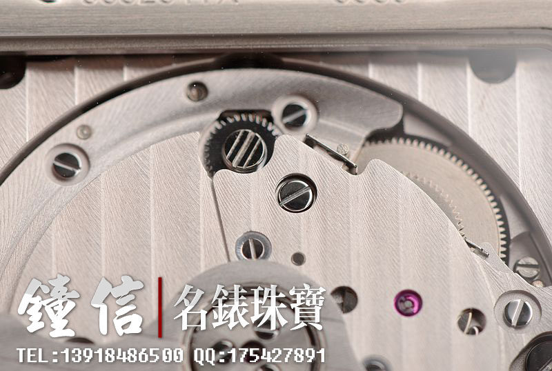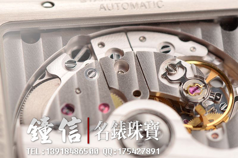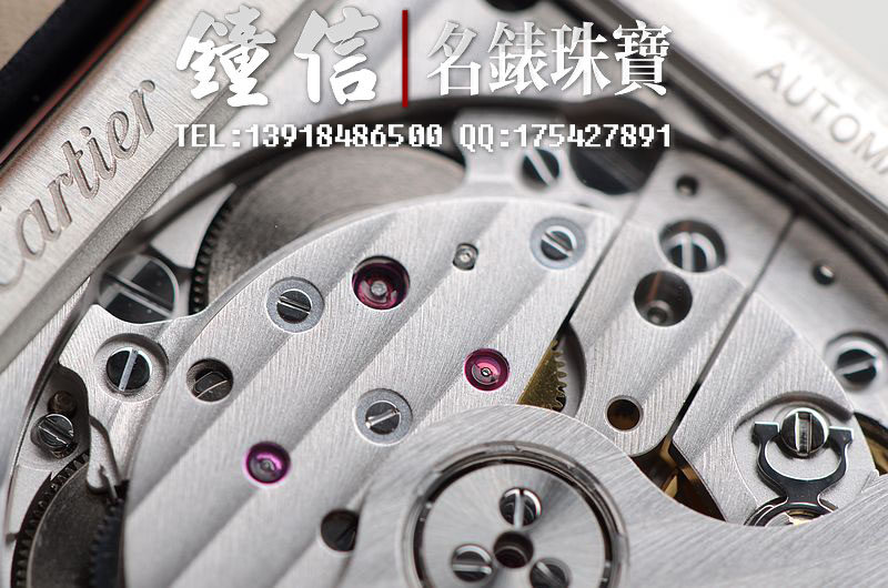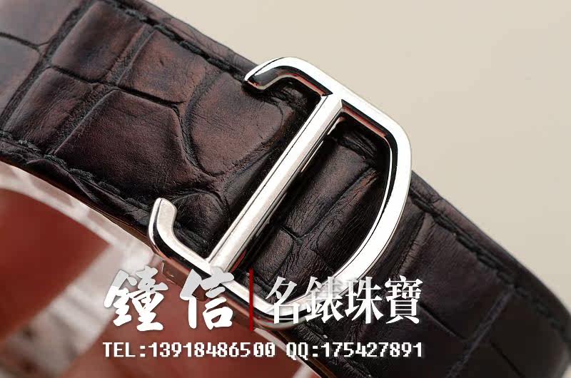 卡地亚自产的CAL.1904-PS机芯,自动机械,精致日内瓦条纹打磨,由186个零件组成,27钻,摆频28800。动力储存约48小时。走时状态极佳。