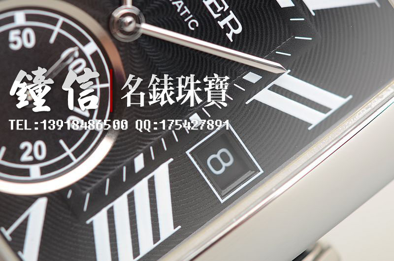 精钢表壳及折叠式表扣,原厂黑色鳄鱼皮表带成色极新。蓝宝石水晶镜面及底盖,立体黑色放射纹表盘,小三针设计,3点位日历显示功能。银色指针,罗马字刻度。蓝宝石表把。口径43.5MM*34.5MM*9.5MM不含表把,含表把约38.5MM。相当于圆表41MM左右大小。防水30M。