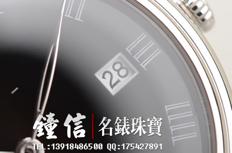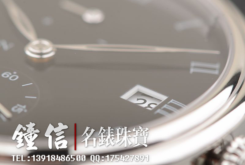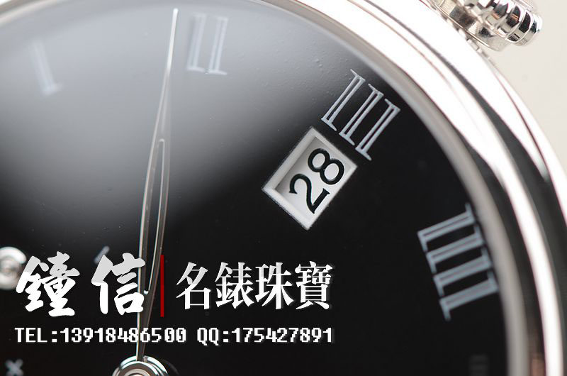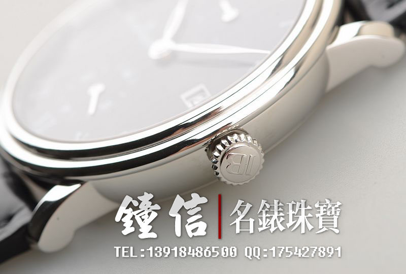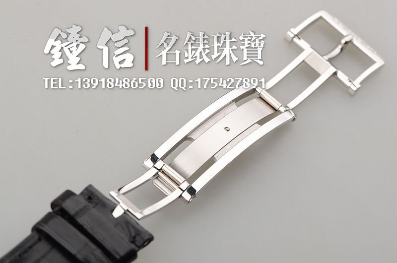 PT950铂金表壳及折叠式表扣,圣伯纳狗头印记。原厂全新黑色短吻鳄鱼皮表带未使用过(原表主原先用代用皮带)。蓝宝石水晶镜面及底盖,著名大明火黑珐琅表盘,罗马字刻度,经典的白金柳叶时分针,12点位动力储备显示功能,3点位日历显示功能,6点位独立小秒针。口径42MM*10.55MM。防水30M。