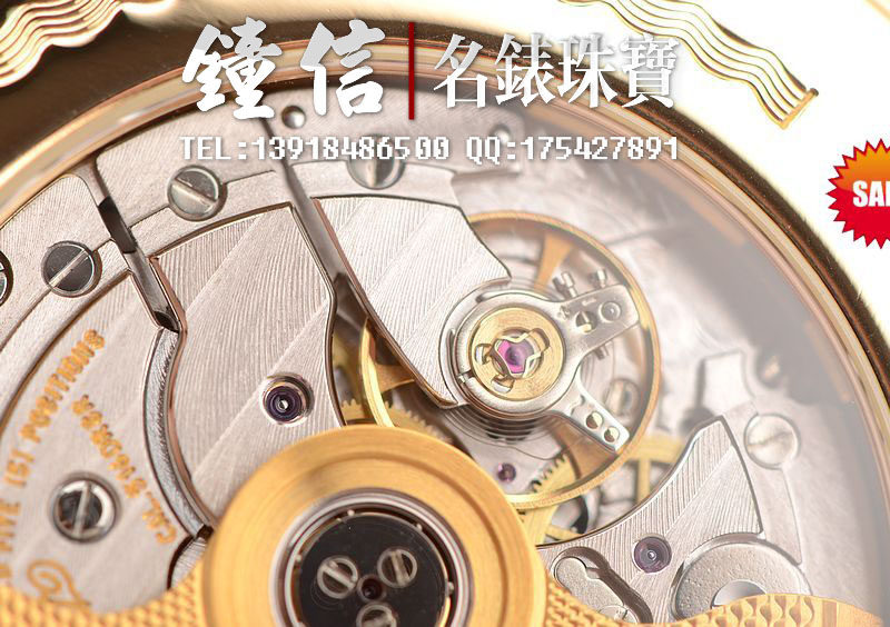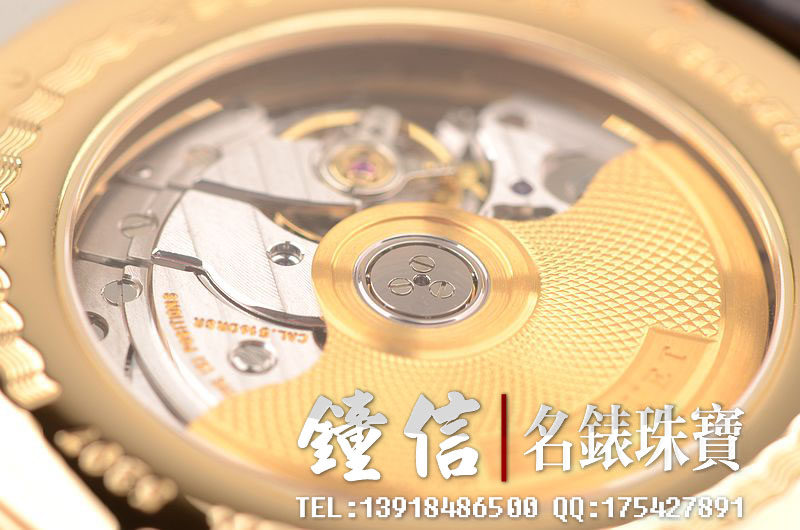 宝玑自产的CAL.516DRSR型机芯,自动机械,极其精致日内瓦条纹打磨,倒角抛光修饰,34钻,摆频28800,5方位校正,18K黄金镌刻自动摆陀。动力储备约65小时。走时状态极佳。
